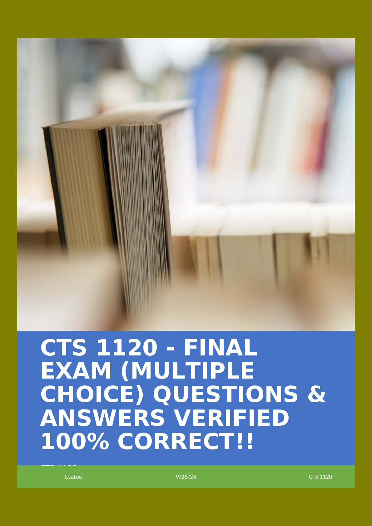 *NURSING > EXAM > CTS 1120 - FINAL EXAM (MULTIPLE CHOICE) QUESTIONS & ANSWERS VERIFIED 100% CORRECT!!
