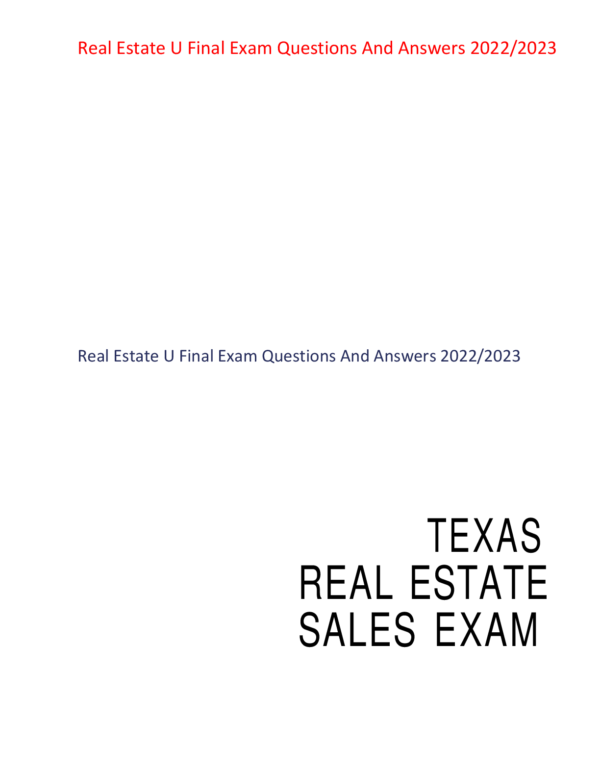 Real Estate > EXAM > Real Estate U Final Exam Questions And Answers 2022/2023