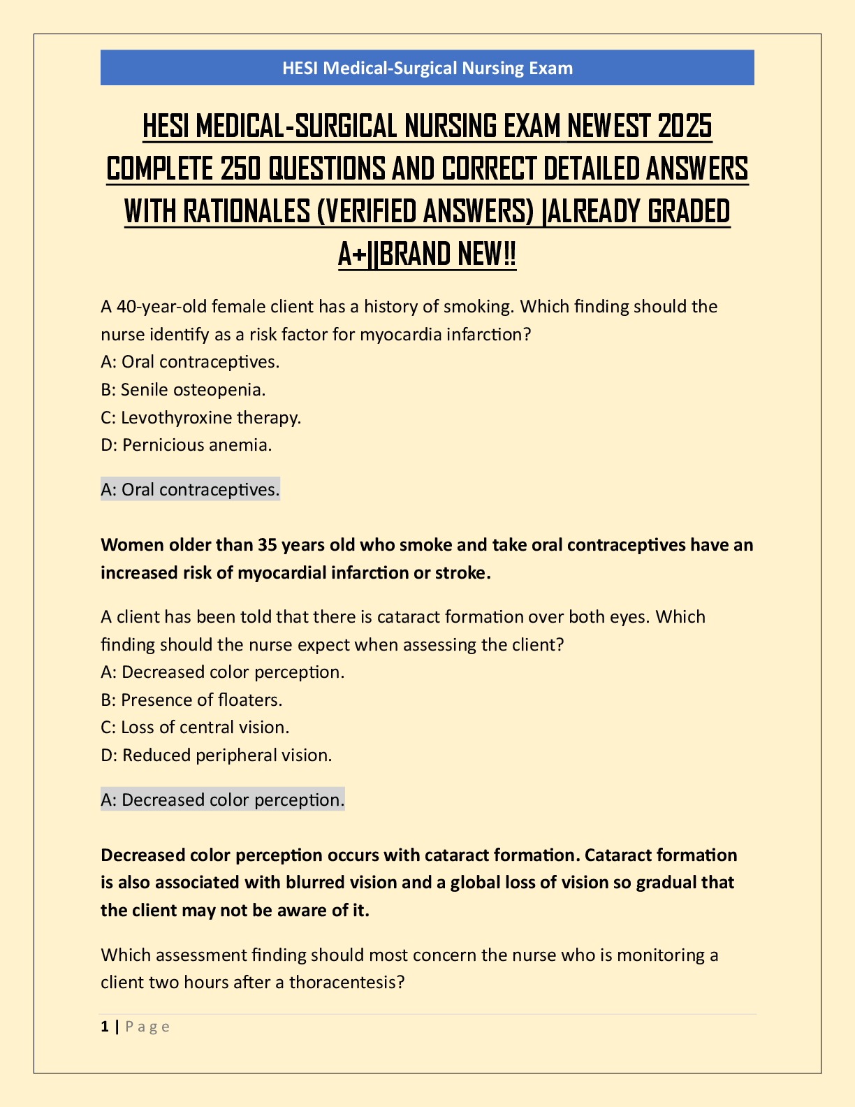 *NURSING > HESI MED SURG > HESI MEDICAL-SURGICAL NURSING EXAM NEWEST 2025 COMPLETE 250 QUESTIONS AND CORRECT DETAILED ANSWERS WITH RATIONALES (VERIFIED ANSWERS) |ALREADY GRADED A+||BRAND NEW!!