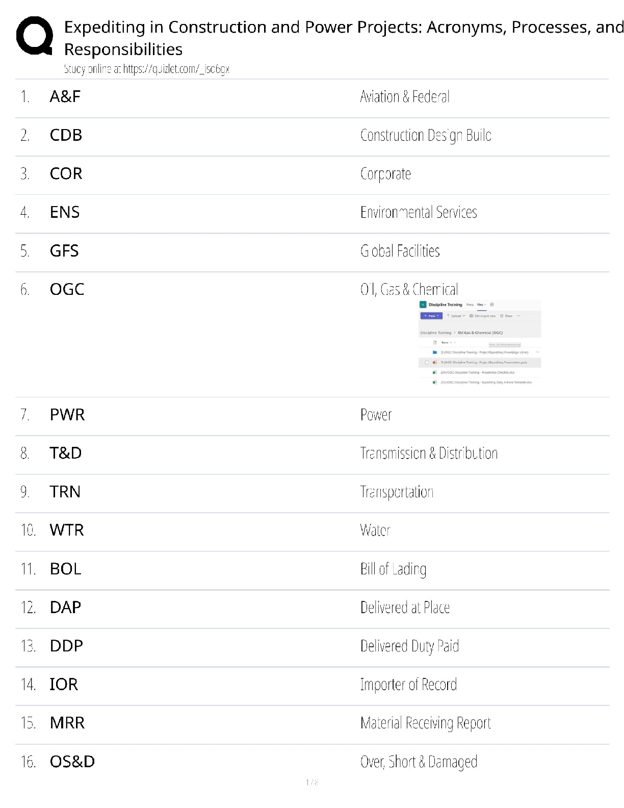 Construction and The Built Environment > QUESTIONS and ANSWERS > Expediting in Construction & Power Projects / Acronyms & Processes Guide / 2026 Study Prep / Exam Review / Score 100%