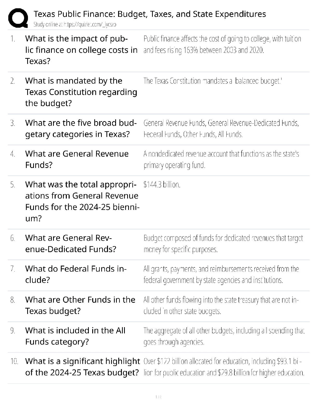 Accounting > QUESTIONS and ANSWERS > Texas Public Finance / Budget & Taxes / State Expenditures Guide / 2026 Study Guide / Exam Prep / Score 100%
