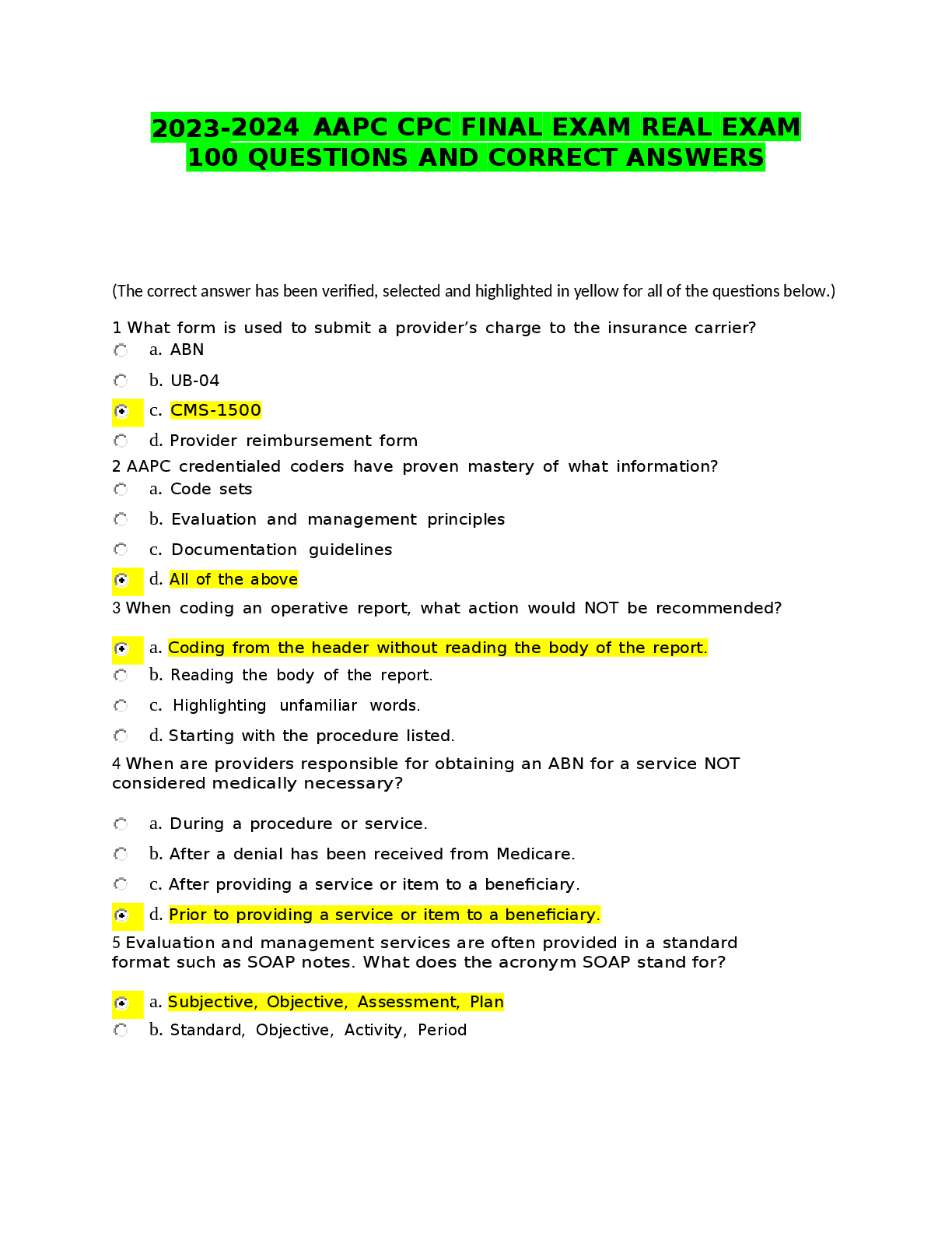 *NURSING > EXAM > 2023-2024 AAPC CPC FINAL EXAM REAL EXAM 100 QUESTIONS AND CORRECT ANSWERS