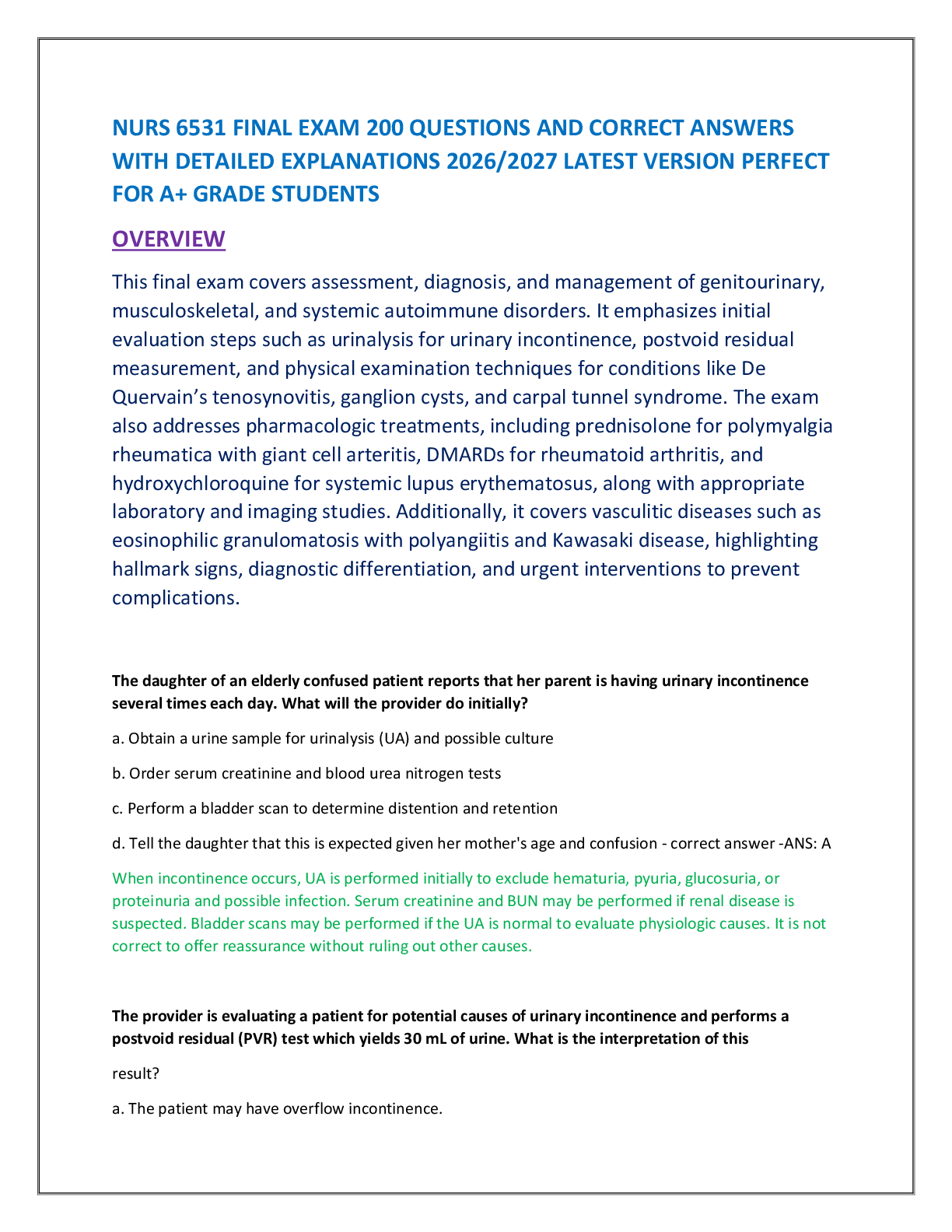 *NURSING > FINAL EXAM > NURS 6531 FINAL EXAM 200 QUESTIONS AND CORRECT ANSWERS WITH DETAILED EXPLANATIONS 2026/2027 LATEST VERSION PERFECT FOR A+ GRADE STUDENTS