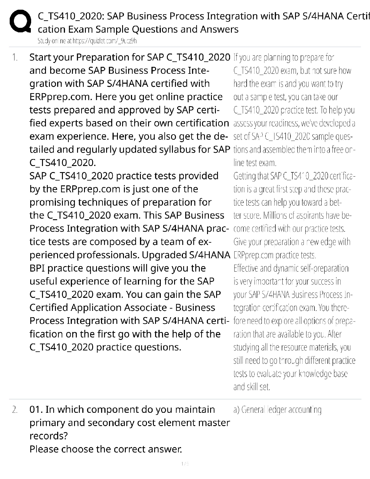 Business Management > QUESTIONS & ANSWERS > C_TS410_2020 SAP S/4HANA Certification Test Bank / Business Process Integration / 2025 Update / Score 100%