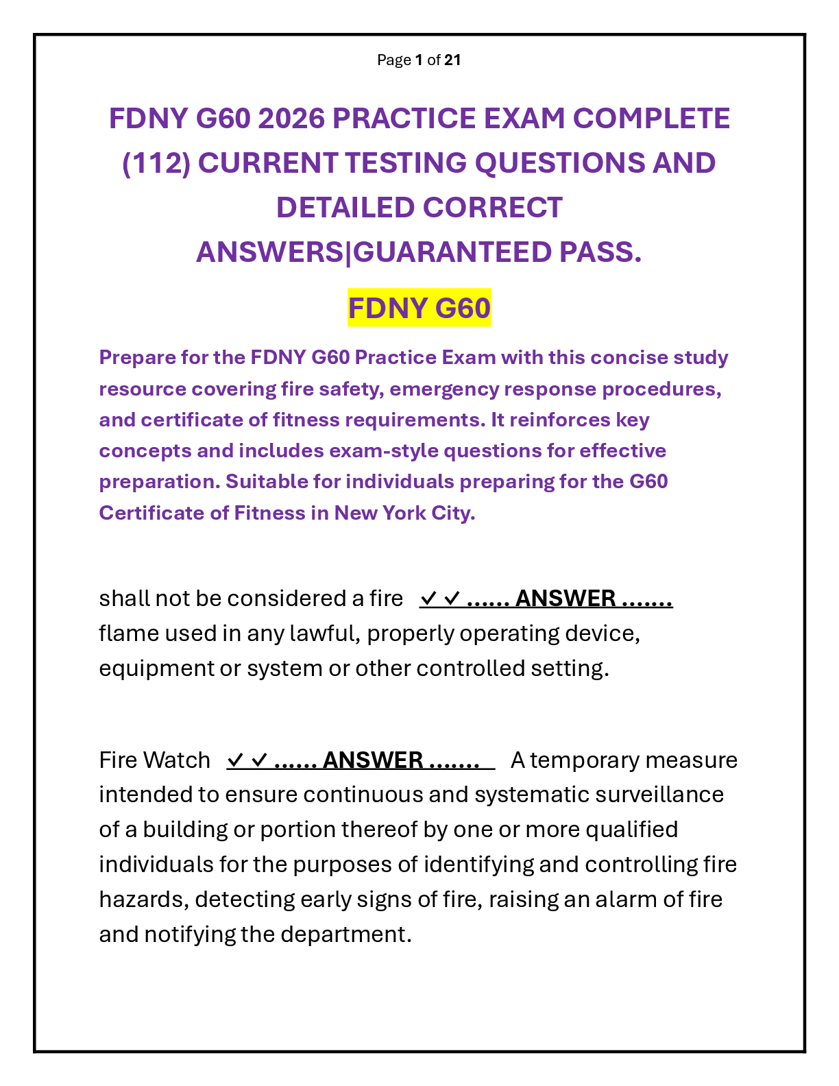 Firefighter 1 & 2 > QUESTIONS & ANSWERS > FDNY G60 2026 PRACTICE EXAM QUESTION AND ANSWER