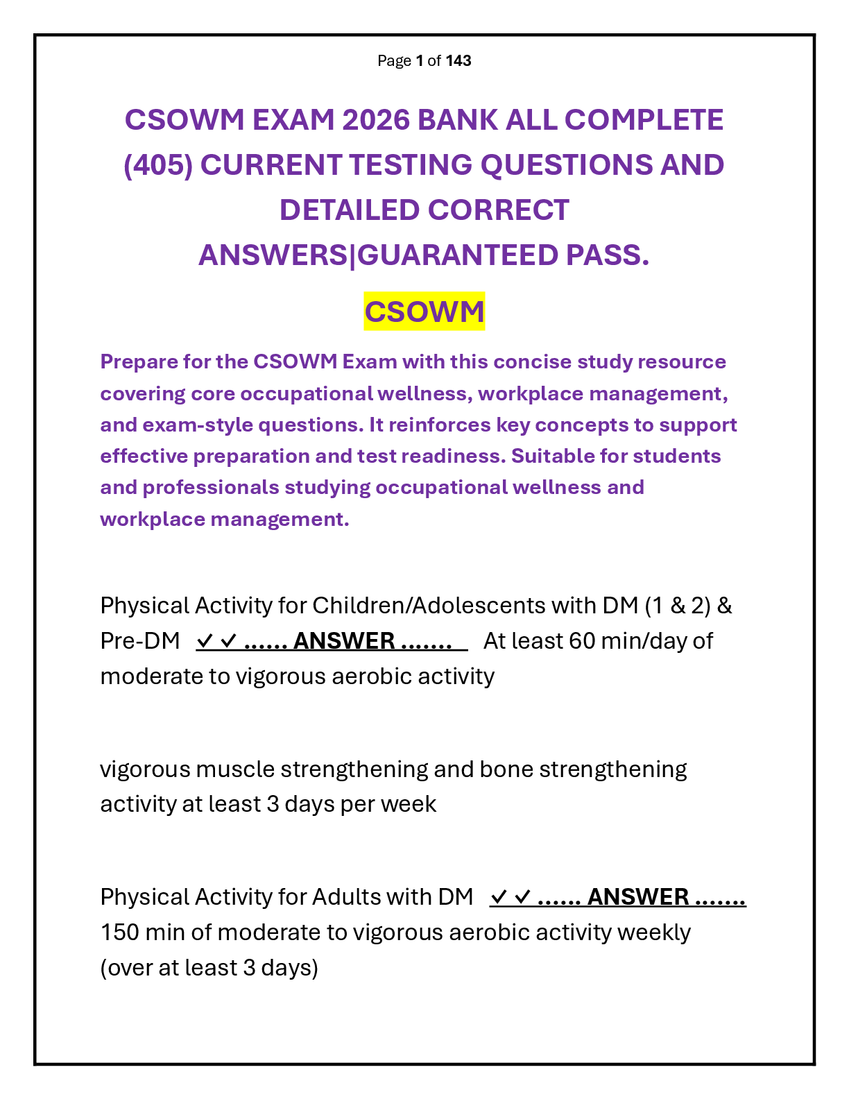 Safety Management > QUESTIONS & ANSWERS > CSOWM EXAM 2026 QUESTION AND ANSWER