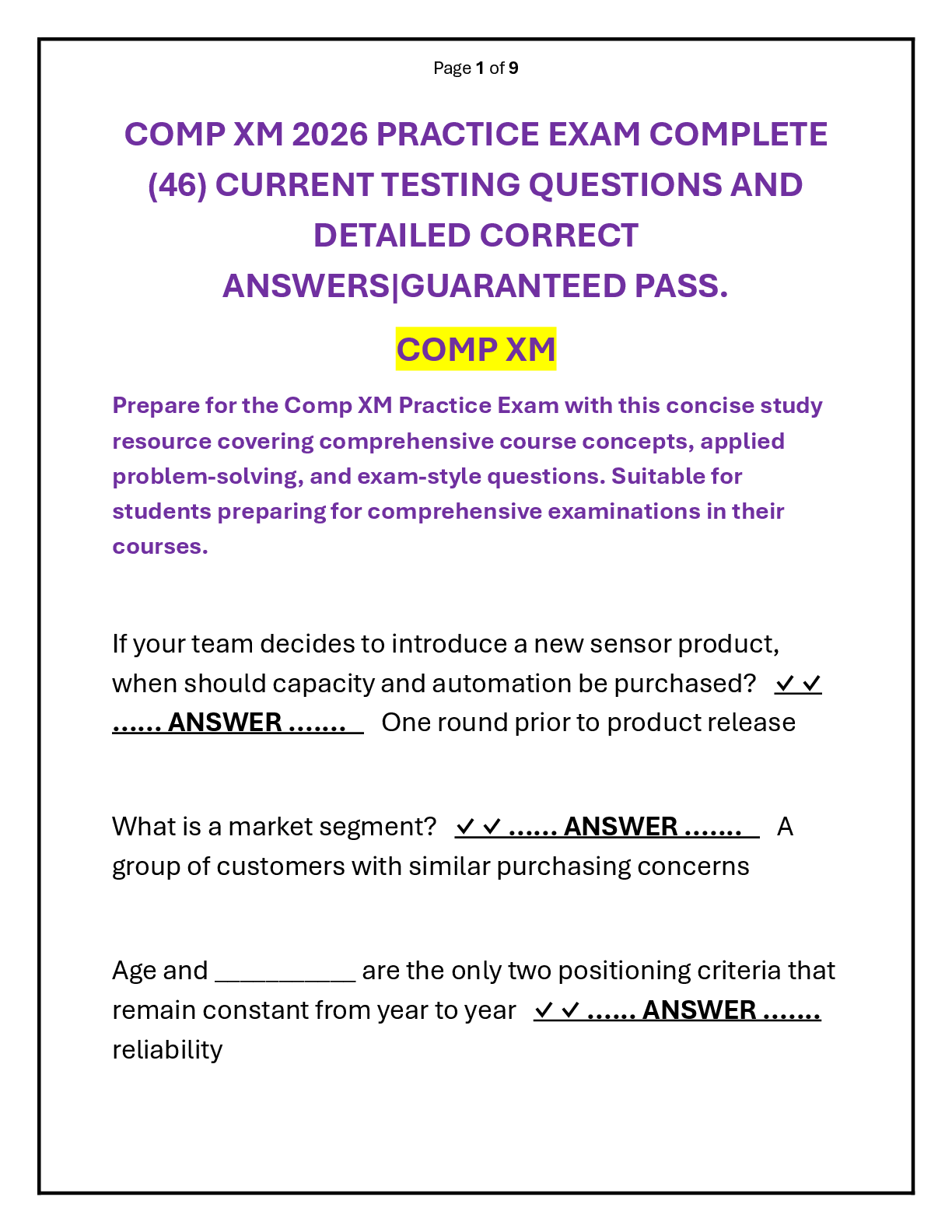 Business Management > QUESTIONS & ANSWERS > COMP XM 2026 PRACTICE EXAM QUESTION AND ANSWER