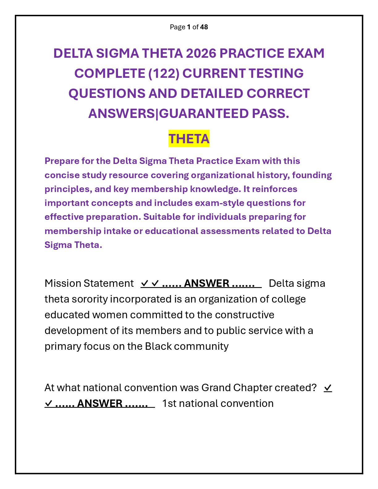 History > QUESTIONS & ANSWERS > DELTA SIGMA THETA 2026 PRACTICE EXAM QUESTION AND ANSWER