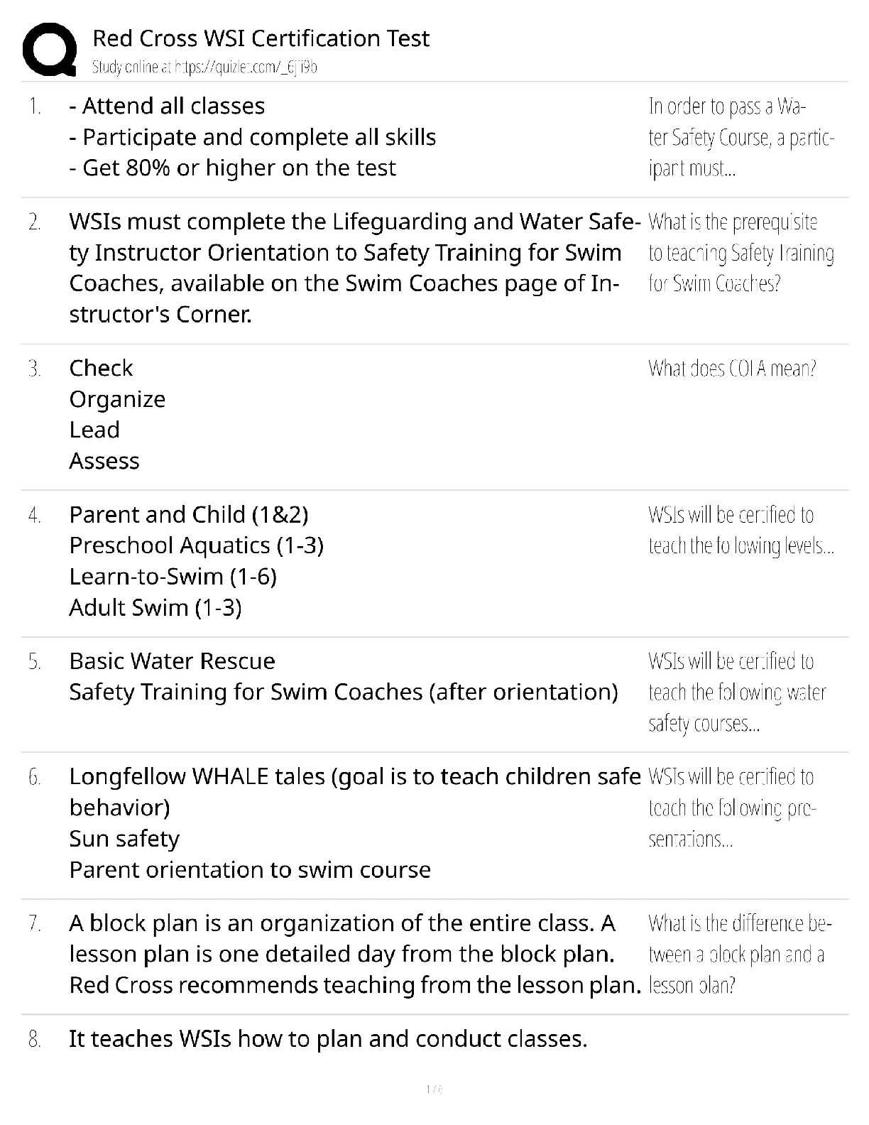 Health Care > QUESTIONS & ANSWERS > Red Cross WSI Certification Test / 2026 Study Guide / Water Safety Instructor Exam Prep / Score 100%