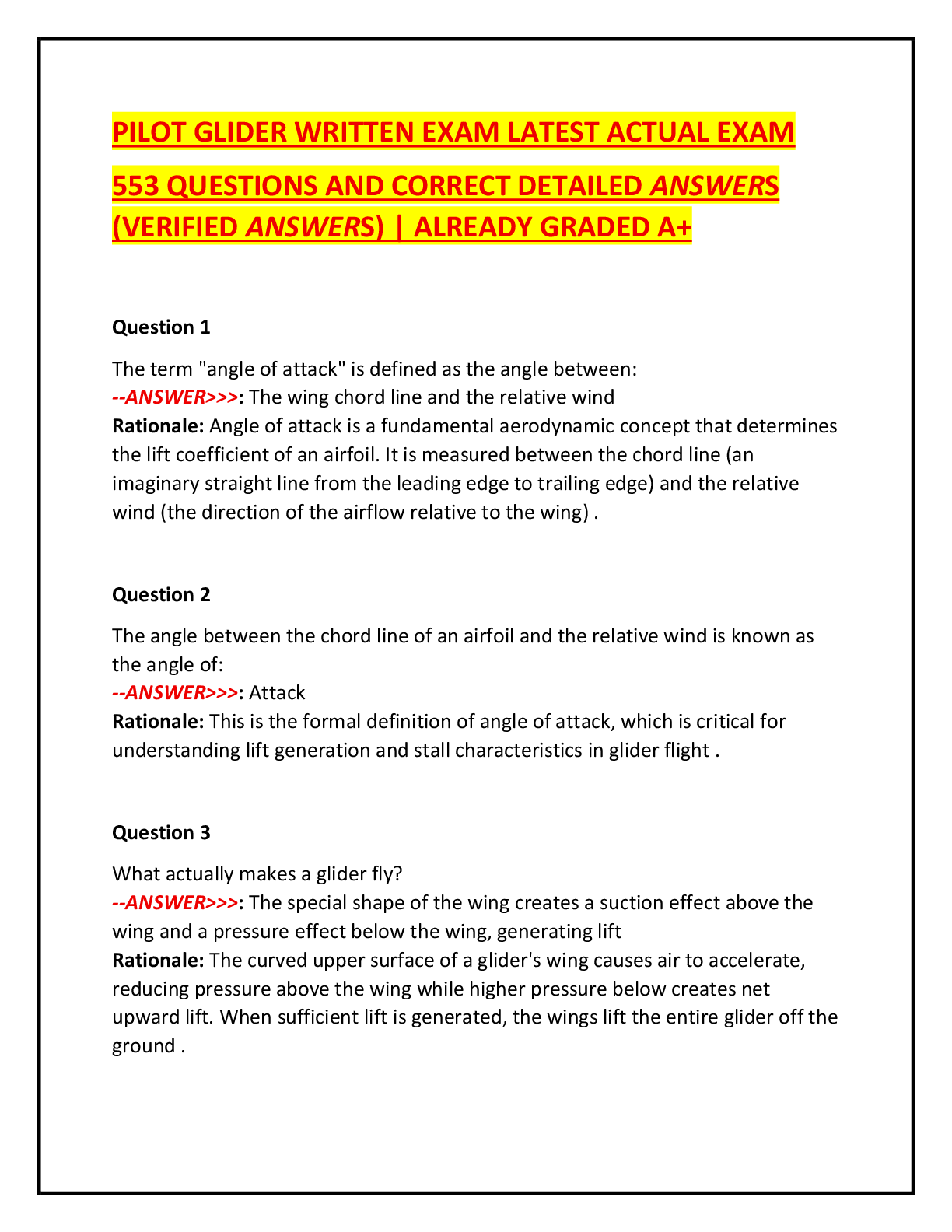 *NURSINGTEST BANKS  > PILOT GLIDER WRITTEN EXAM LATEST ACTUAL EXAM 553 QUESTIONS AND CORRECT DETAILED ANSWERS (VERIFIED ANSWERS) | ALREADY GRADED A+