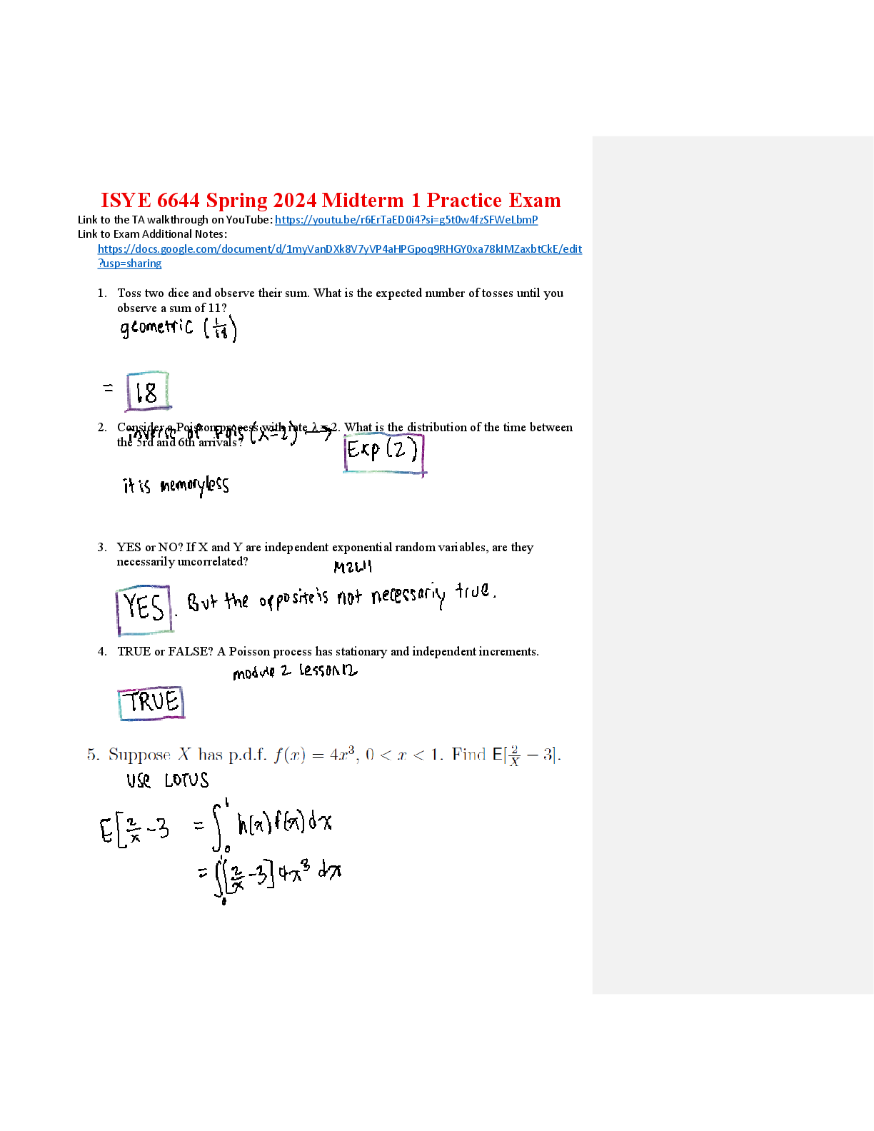 Mathematics > QUESTIONS & ANSWERS > ISYE 6644 Spring 2025 Midterm 1 Practice Exam
