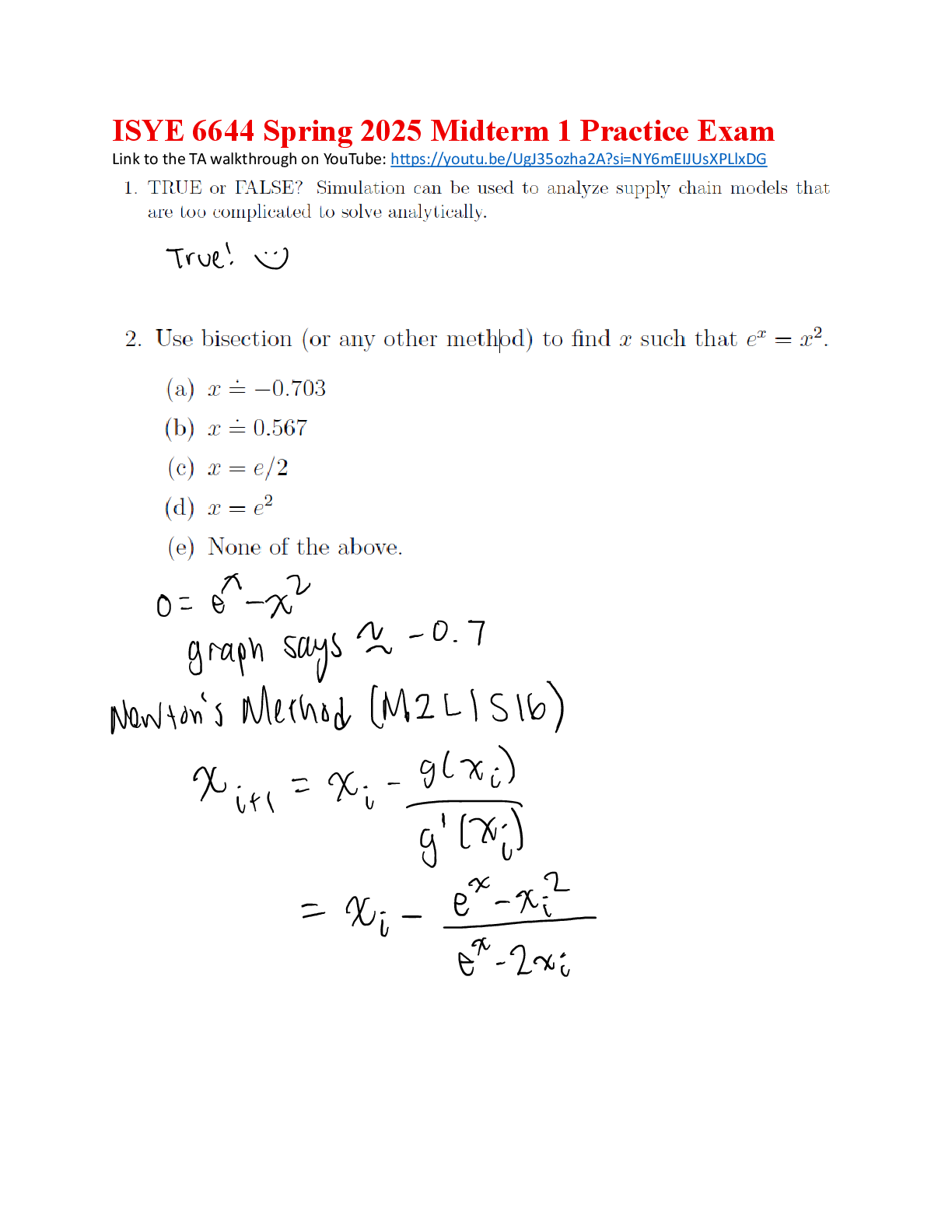 Mathematics > FINAL EXAM > ISYE 6644 Spring 2025 Practice Exam Final
