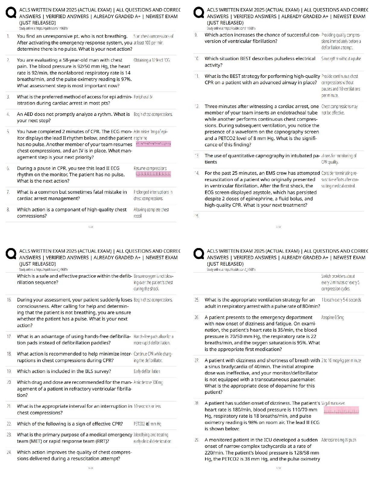 CARDIOVASCULAR > QUESTIONS & ANSWERS > ACLS Written Exam 2025 / Score 100% / Advanced Cardiovascular Life Support New Version
