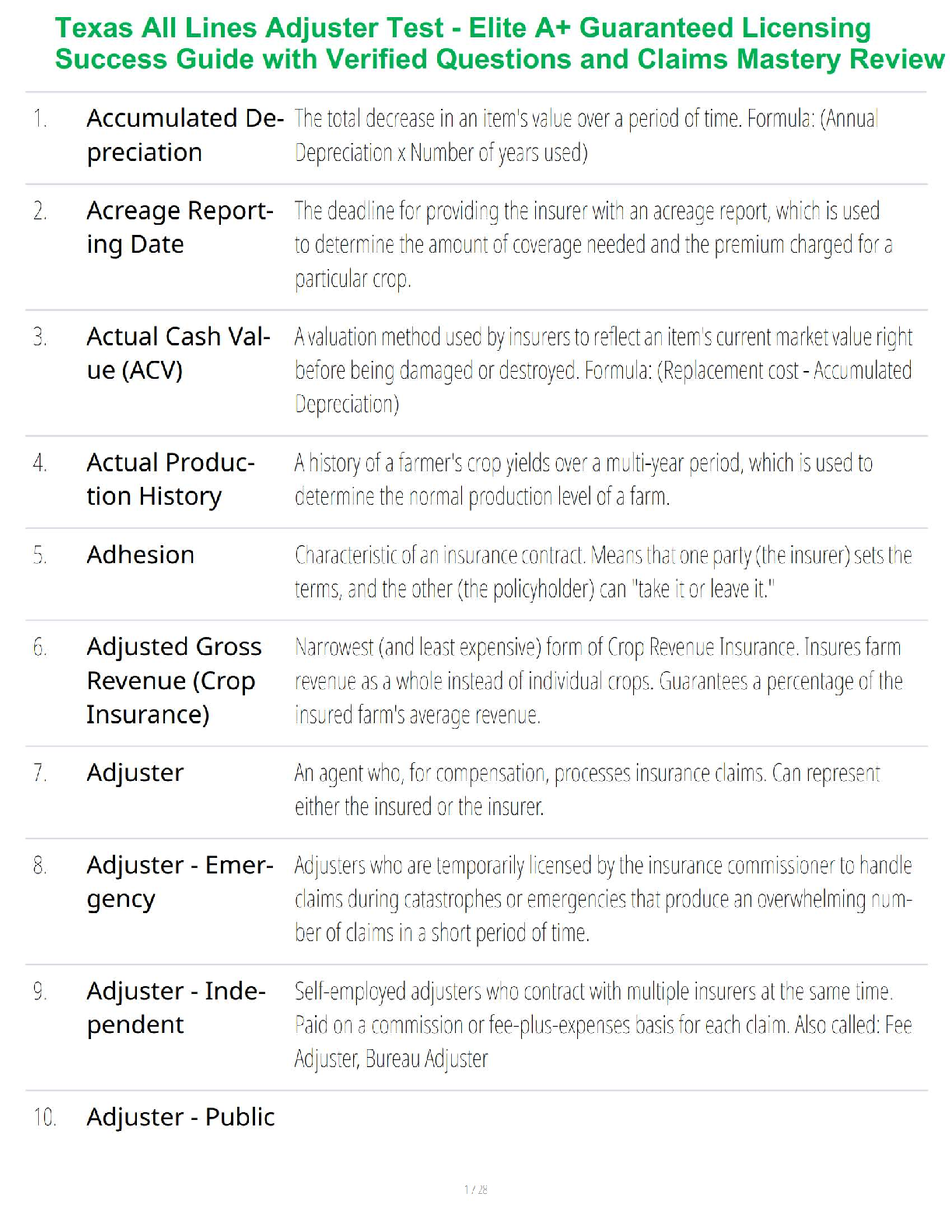 Real Estate > STUDY GUIDE > Texas All Lines Adjuster Test - High-Impact A+ Guaranteed Pass Blueprint with Verified Licensing Questions and Claims Strategy Mastery