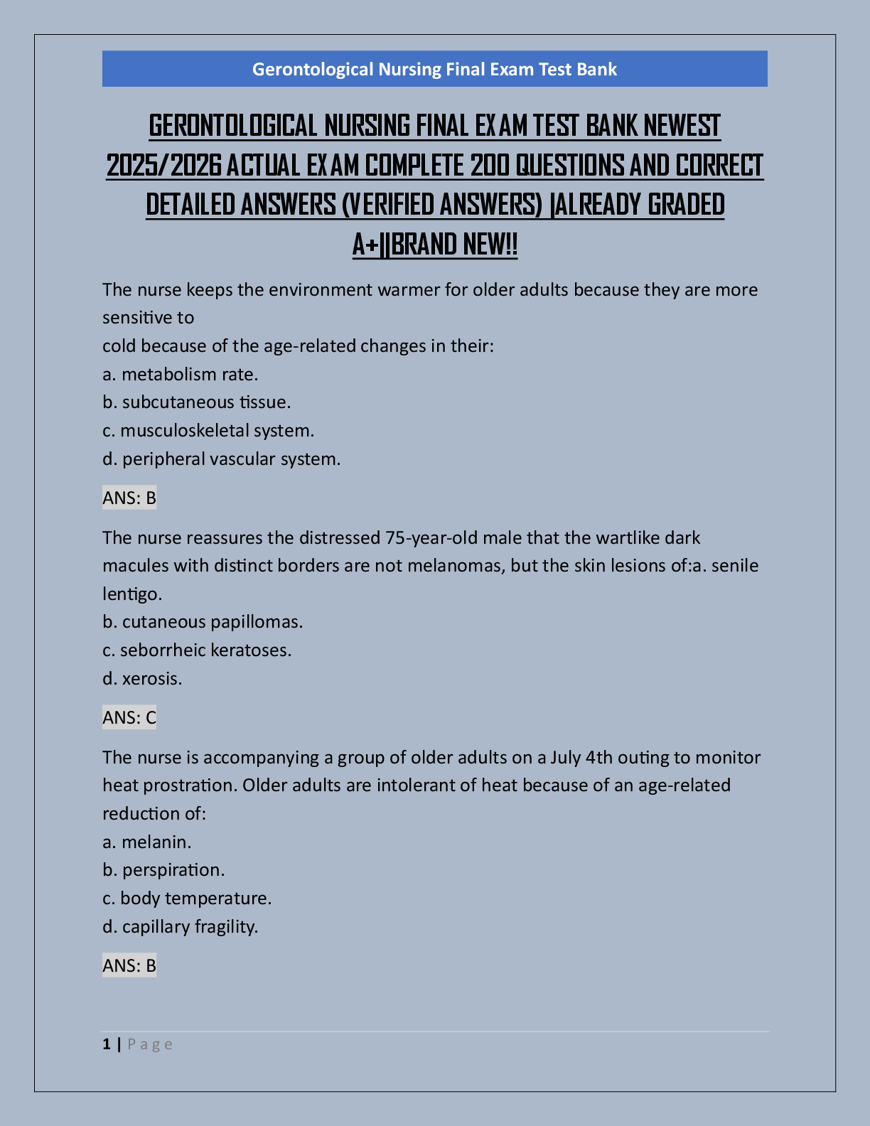 *NURSING > FINAL EXAM > GERONTOLOGICAL NURSING FINAL EXAM TEST BANK NEWEST 2025/2026 ACTUAL EXAM COMPLETE 200 QUESTIONS AND CORRECT DETAILED ANSWERS (VERIFIED ANSWERS) |ALREADY GRADED A+||BRAND NEW!!