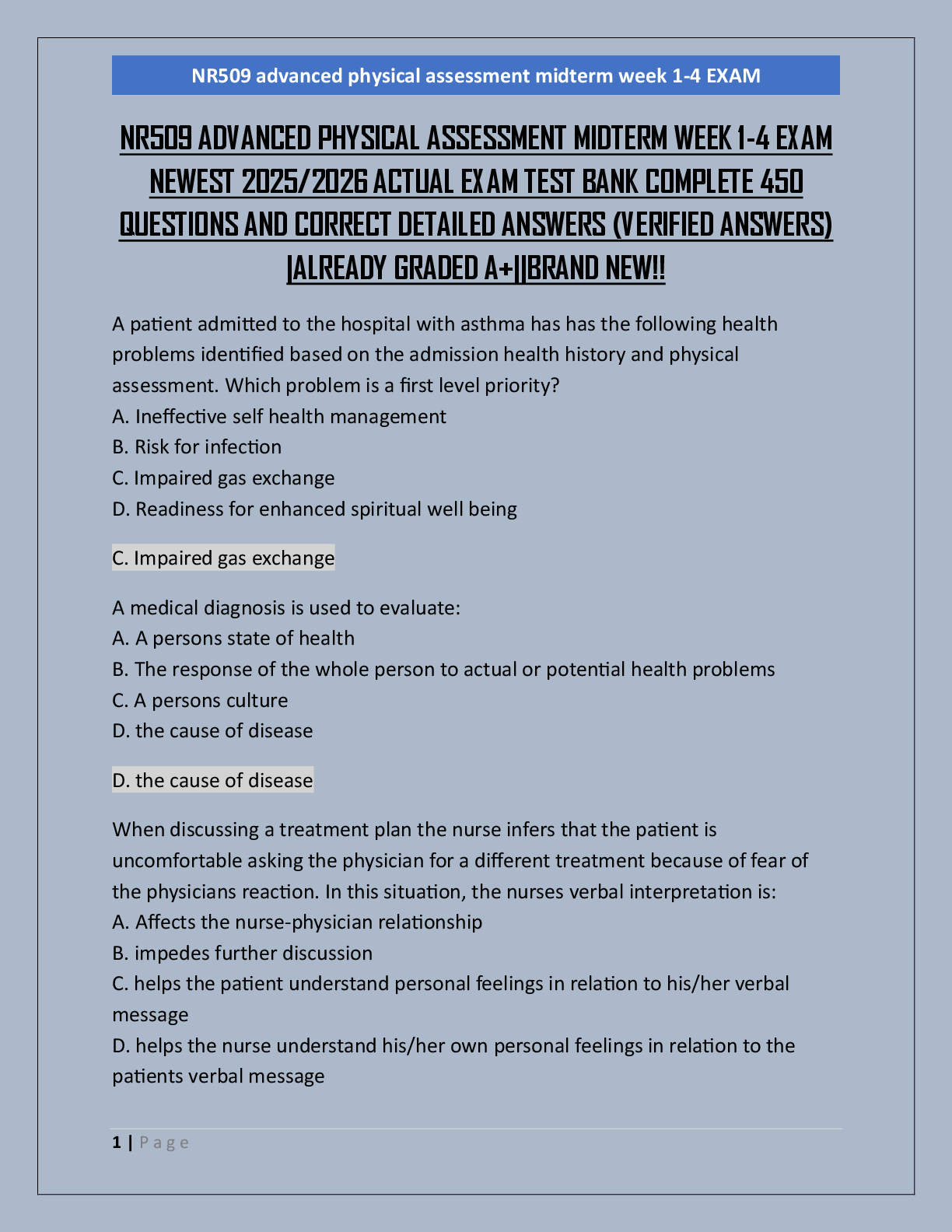 *NURSING > EXAM > NR509 ADVANCED PHYSICAL ASSESSMENT MIDTERM WEEK 1-4 EXAM NEWEST 2025/2026 ACTUAL EXAM TEST BANK COMPLETE 450 QUESTIONS AND CORRECT DETAILED ANSWERS (VERIFIED ANSWERS) |ALREADY GRADED A+||BRAND NEW!!