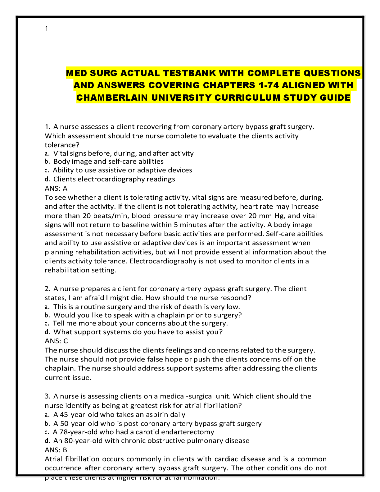 ATI Med Surg > MED-SURG EXAM > MED SURG ACTUAL TESTBANK WITH COMPLETE QUESTIONS AND ANSWERS COVERING CHAPTERS 1-74 ALIGNED WITH CHAMBERLAIN UNIVERSITY CURRICULUM STUDY GUIDE