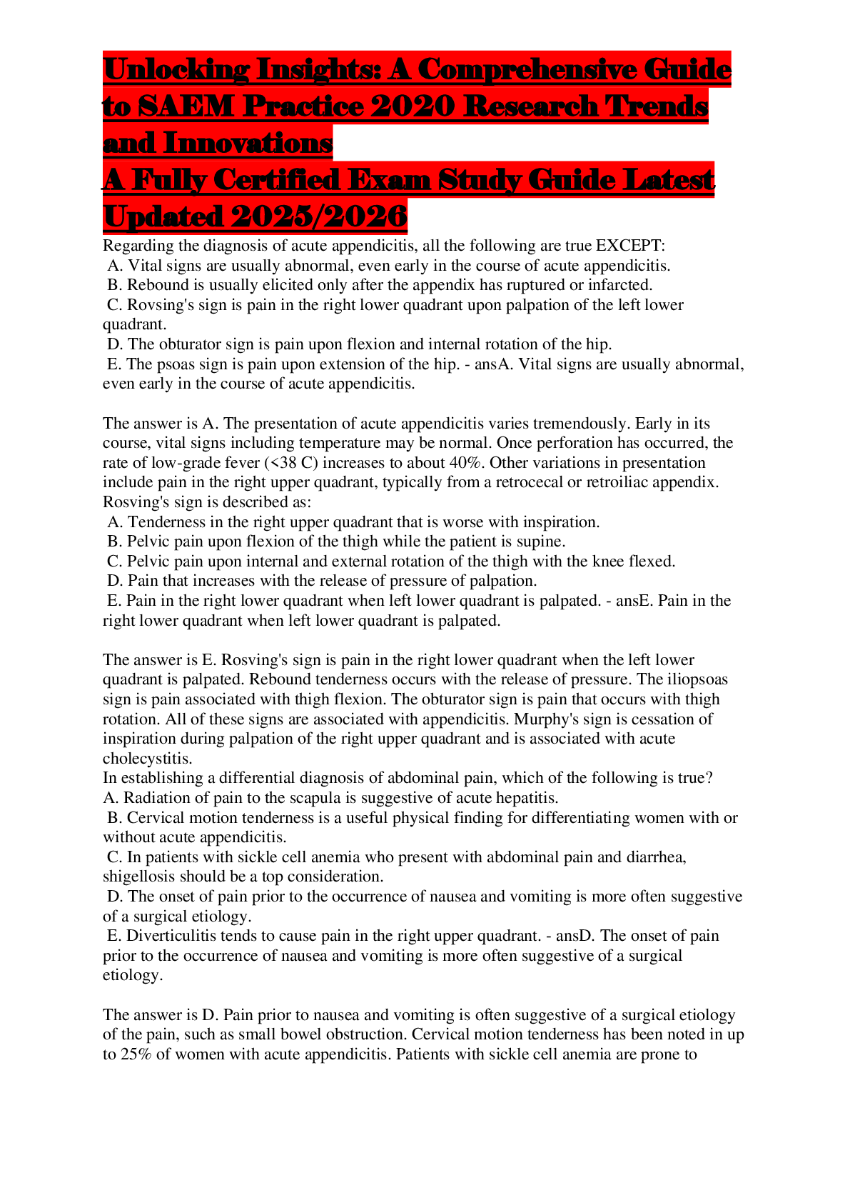 *NURSING > EXAM > A Comprehensive Guide to SAEM Practice 2020 Research Trends and Innovations A Fully Certified Exam Study Guide Latest Updated 2025/2026