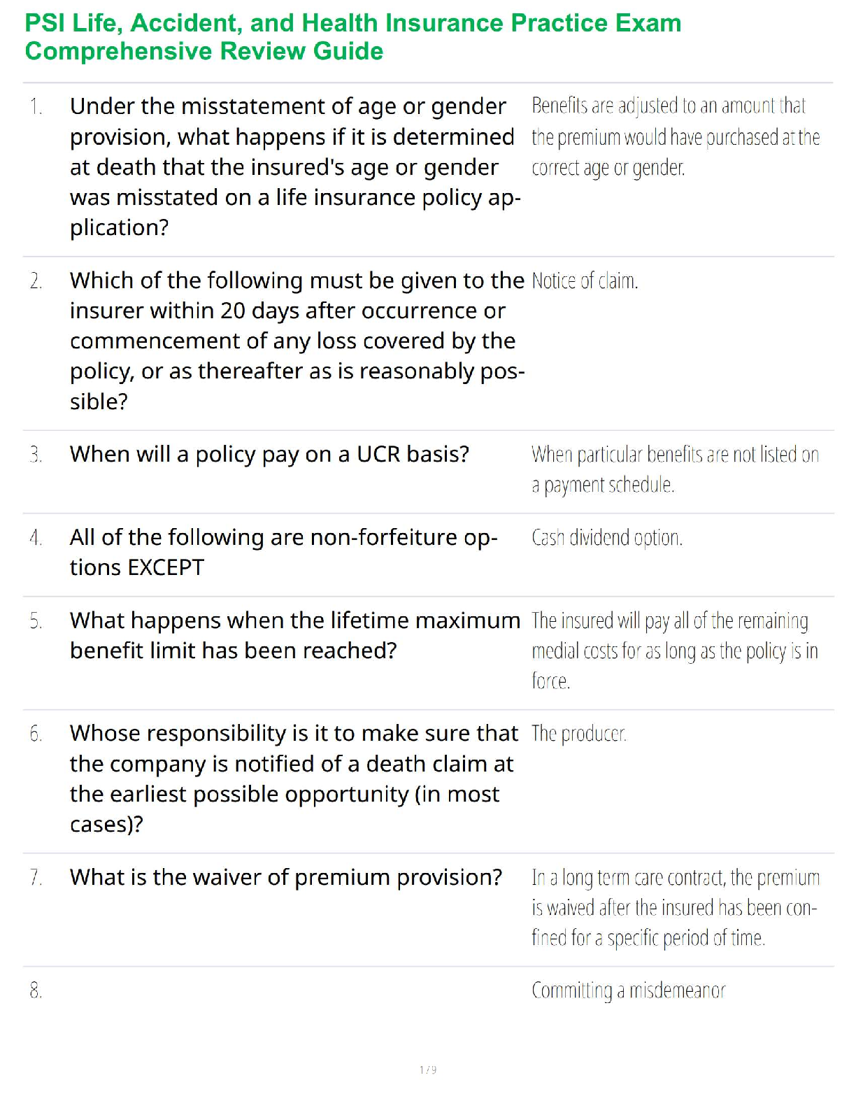 *NURSING > STUDY GUIDE > PSI Life, Accident, and Health Insurance Practice Exam Comprehensive Review Guide