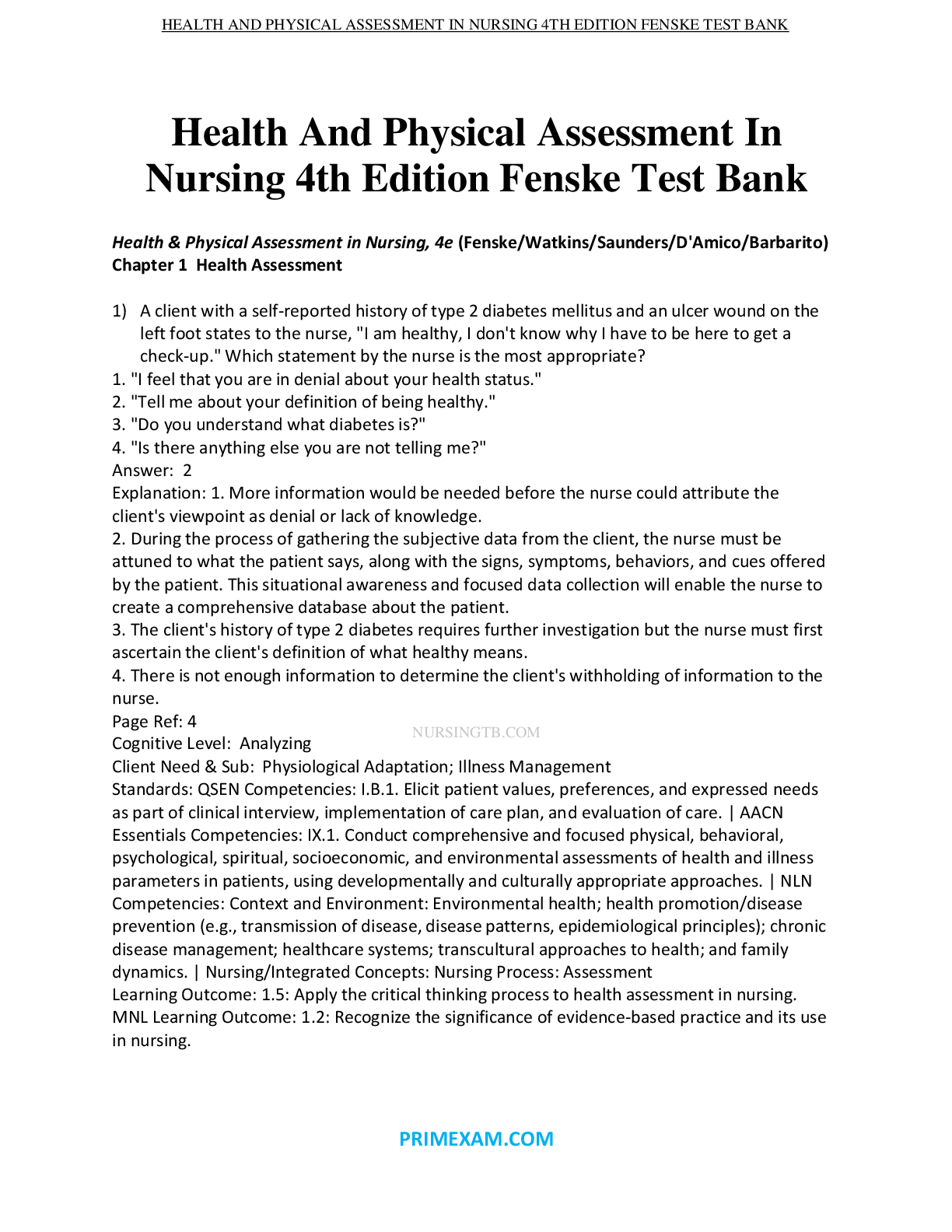 Education > TEST BANKS > Test Bank Health and Physical Assessment In Nursing 4th Edition by Fenske