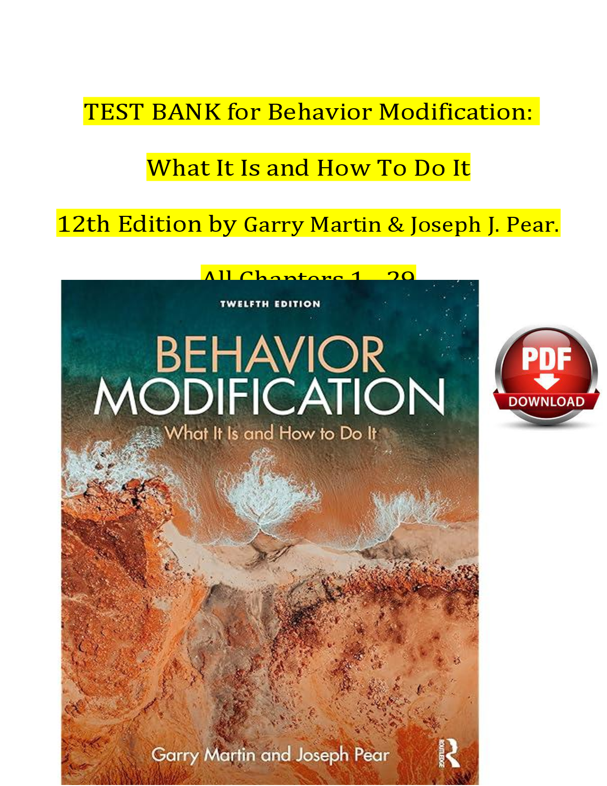 Social and Behavioral > TEST BANKS > Test Bank for Behavior Modification: What It Is and How To Do It, 12th Edition by Garry Martin & Joseph J. Pear | ISBN: 9781032233154 | Complete Chapters 1-29 | MCQ with Answers| Downloadable PDF