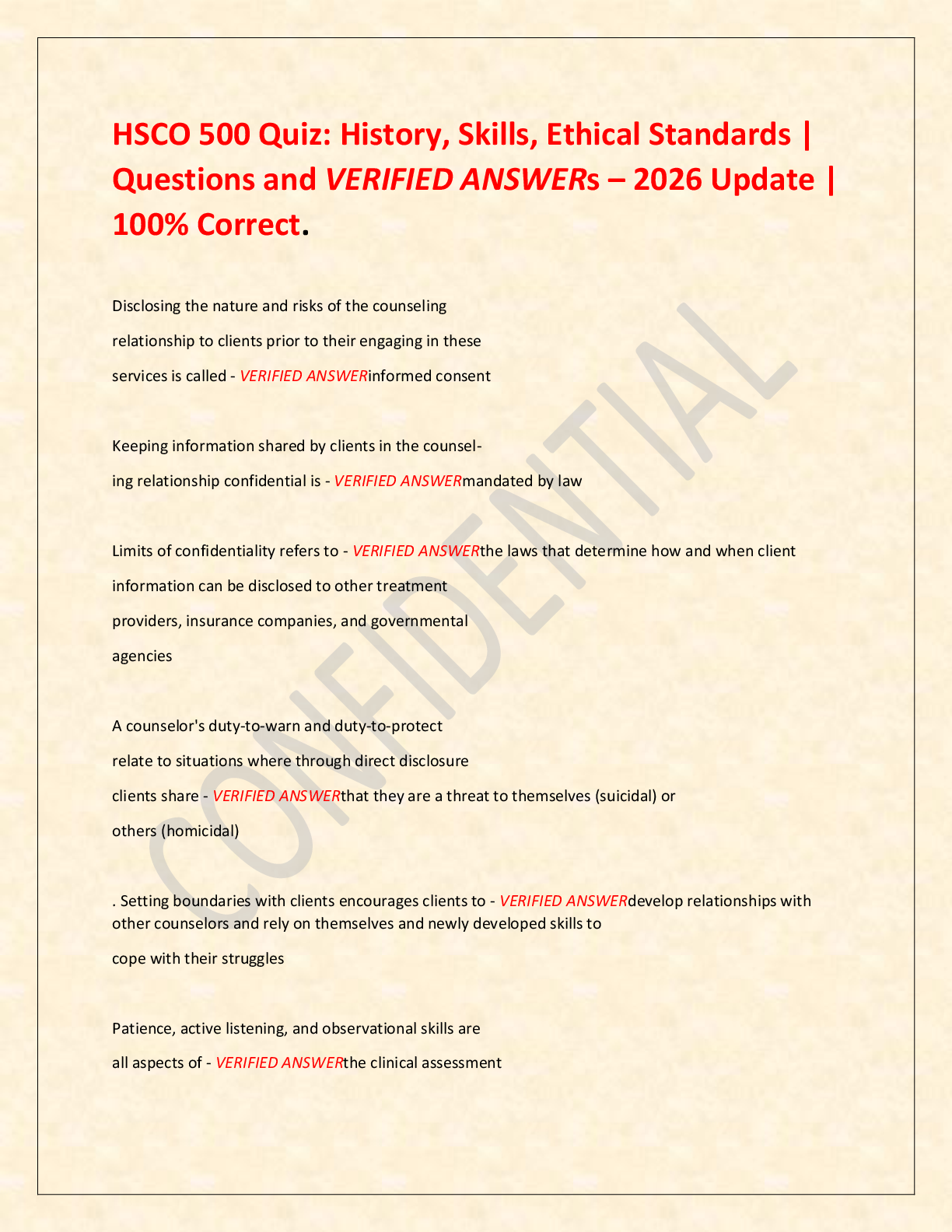 *NURSING > EXAM > HSCO 500 Quiz: History, Skills, Ethical Standards | Questions and VERIFIED ANSWERs – 2026 Update | 100% Correct.