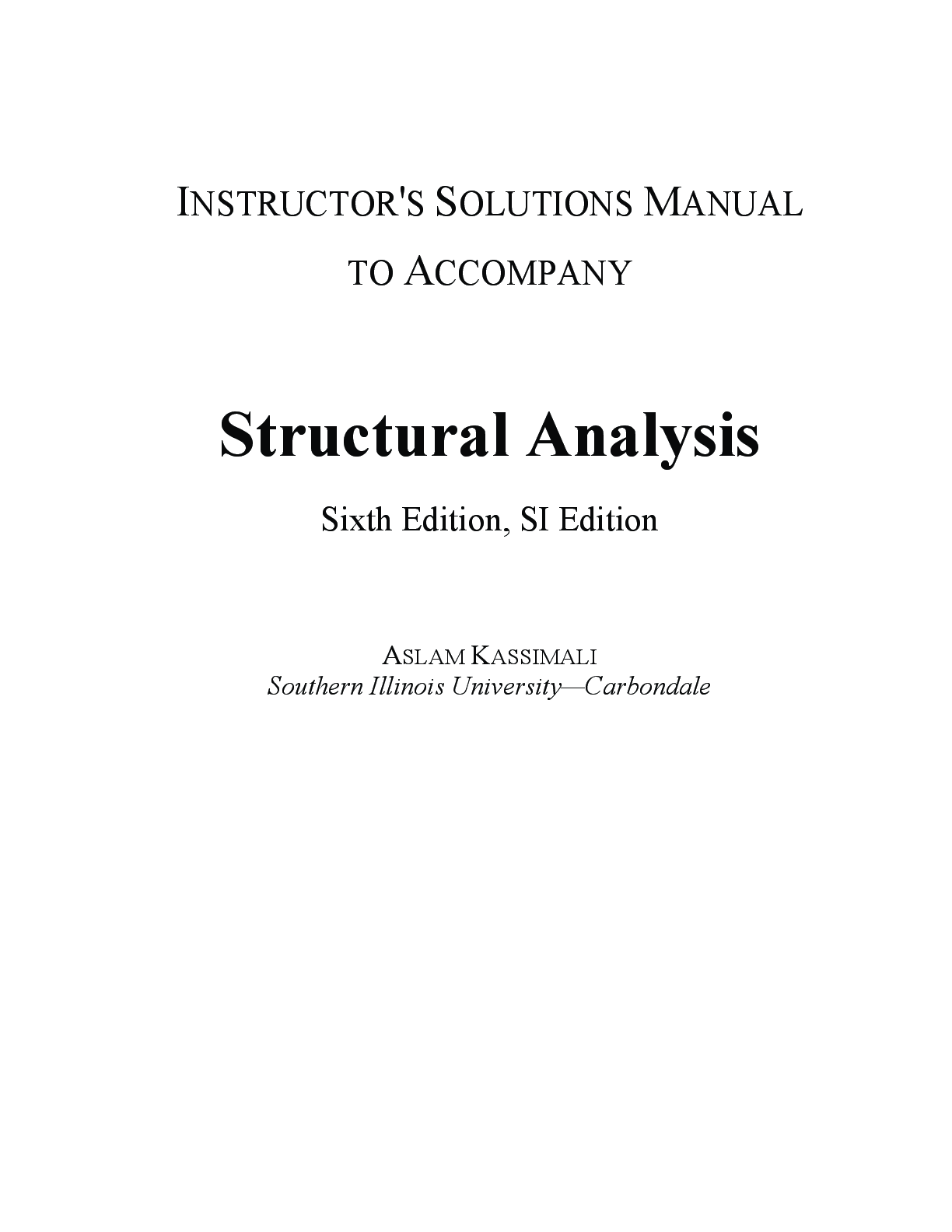 Systems Analysis and Design > INSTRUCTOR MANUALS > INSTRUCTOR'S SOLUTIONS MANUAL TO ACCOMPANY Structural Analysis 6th Edition, SI Edition by ASLAM KASSIMALI A+ Latest