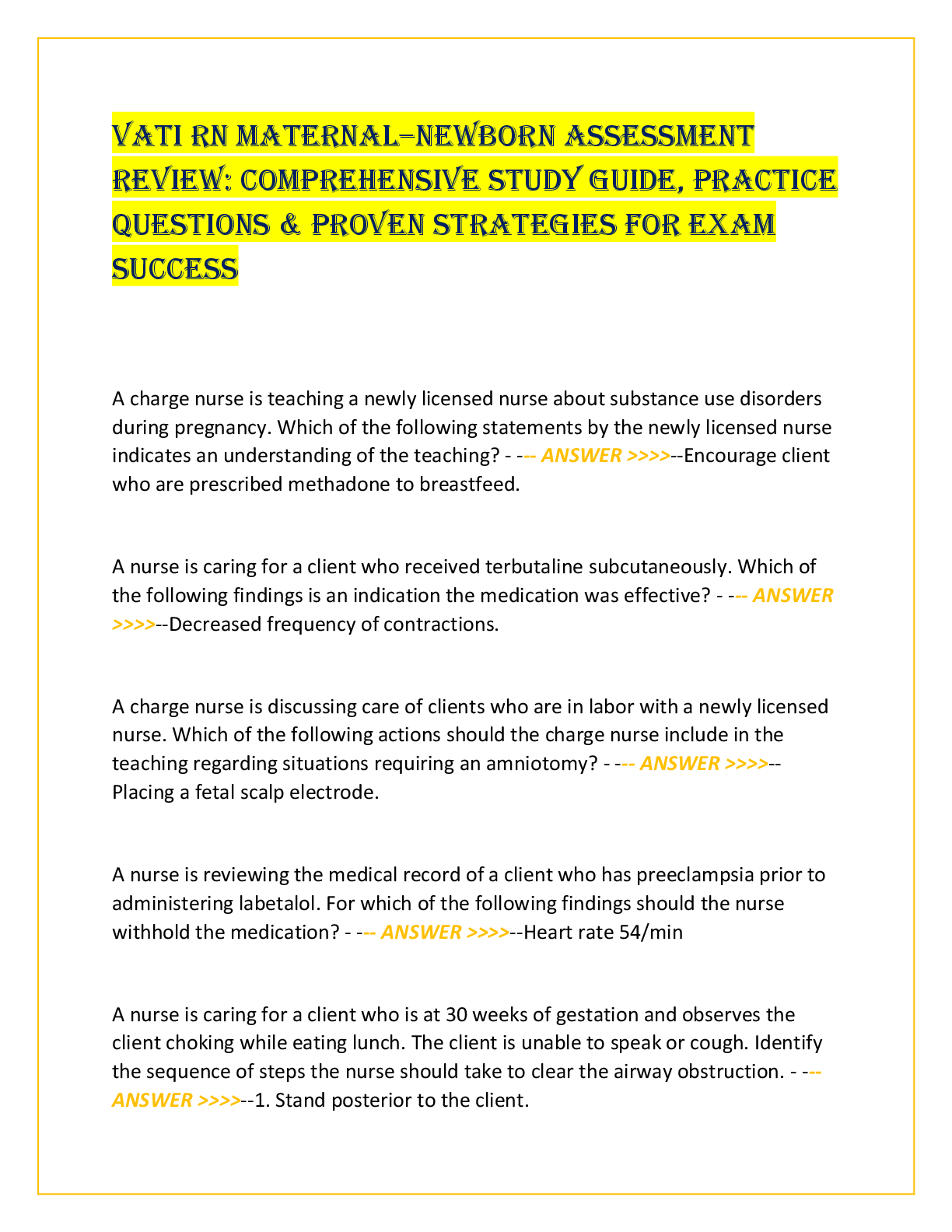 *NURSING > VATI RN > VATI RN MATERNAL–NEWBORN ASSESSMENT REVIEW: COMPREHENSIVE STUDY GUIDE, PRACTICE QUESTIONS & PROVEN STRATEGIES FOR EXAM SUCCESS