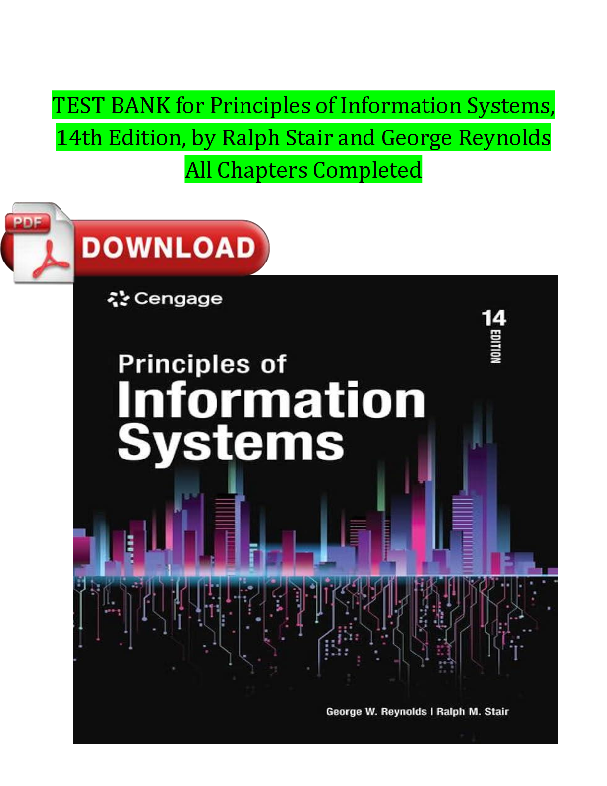 Information Systems ManagementTEST BANKS  > Test Bank for Principles of Information Systems, 14th Edition by Ralph Stair & George Reynolds | ISBN: 9780357112410 | Complete Chapters 1-13 | Q&A | Downloadable PDF