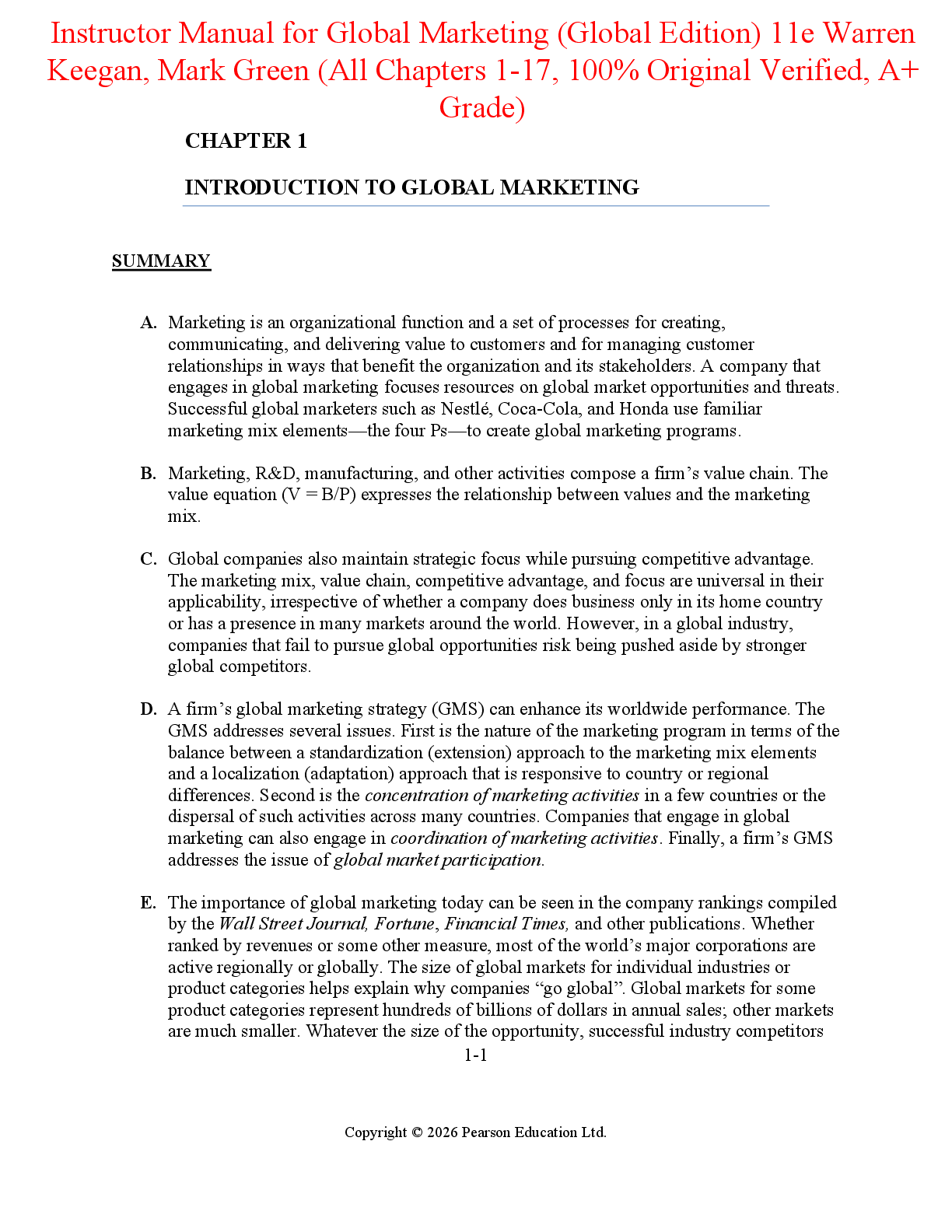 Marketing > INSTRUCTOR MANUALS > Instructor Manual Global Marketing 11th Global Edition By Warren Keegan, Mark Green
