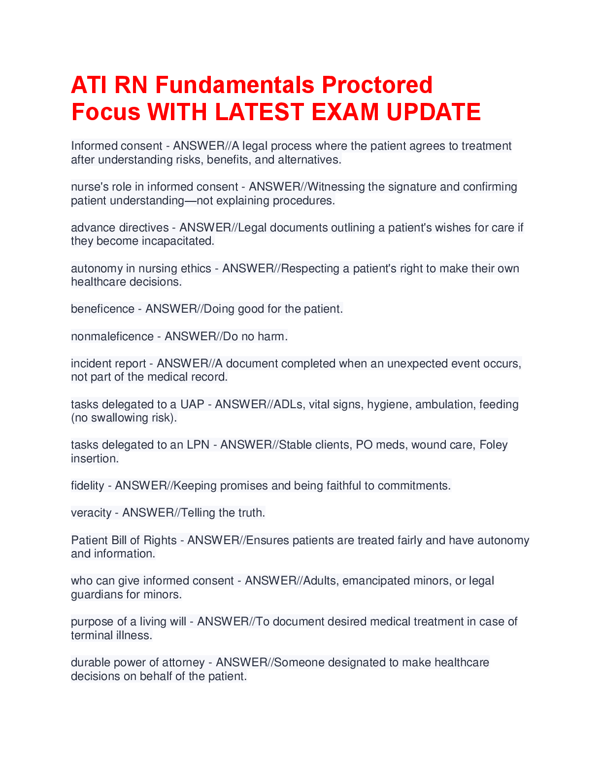 ati fundamentals > A-Level Question Paper > ATI RN Fundamentals Proctored Focus Guide: Latest Exam Update with Verified Answers & Rationales (A+ Graded)