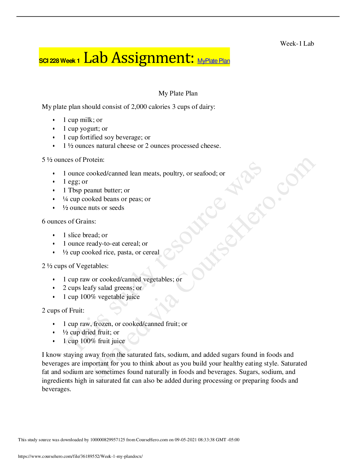 SCI 228 Nutrition, Health, And Wellness With Lab (SCI 228 Entire Course Week 1 – 8) BUNDLED | 100% GUARANTEED ACE.
