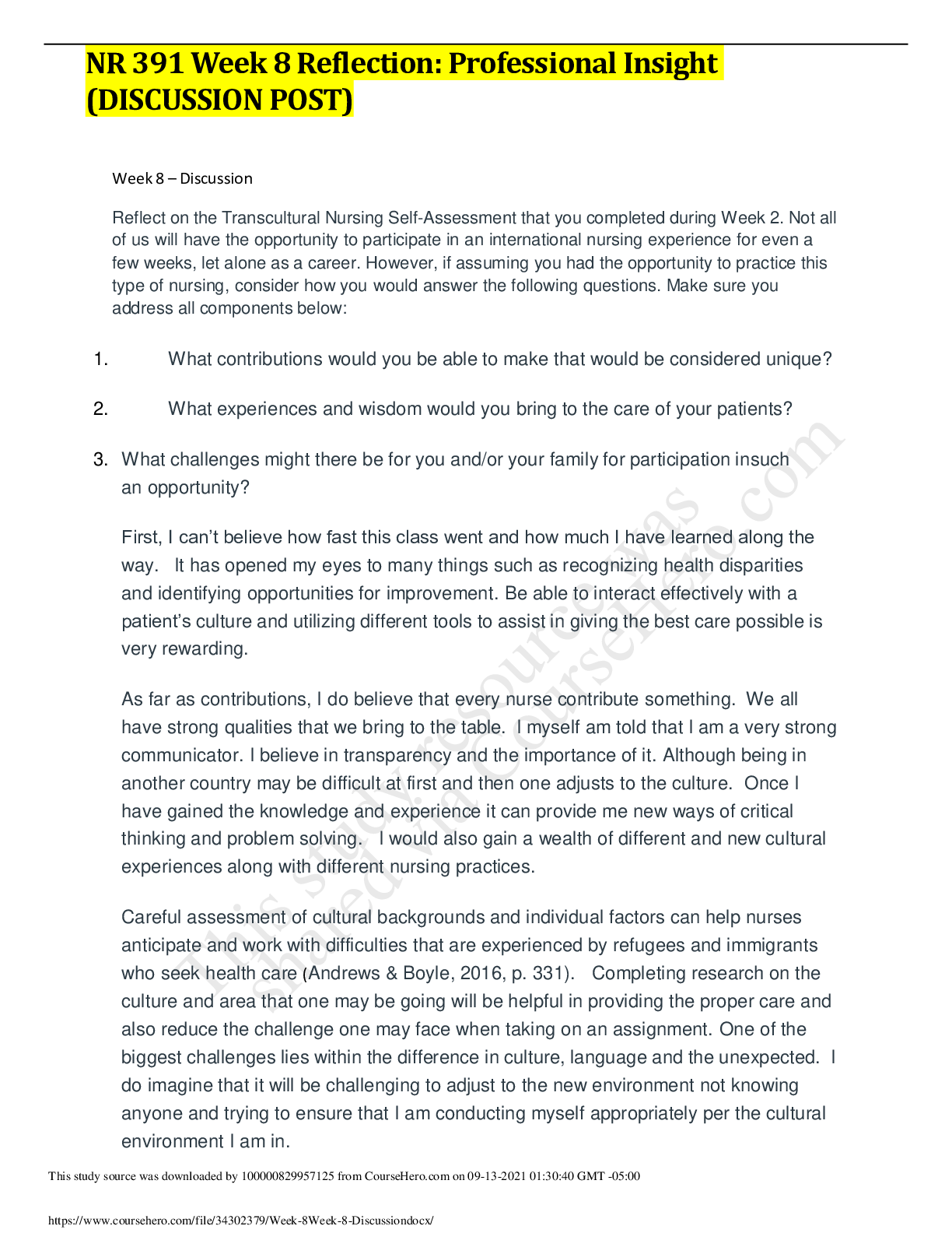 6. Indicate reasons for asking specific questions that relate to culture of origin and healthcare experiences. (50 points)