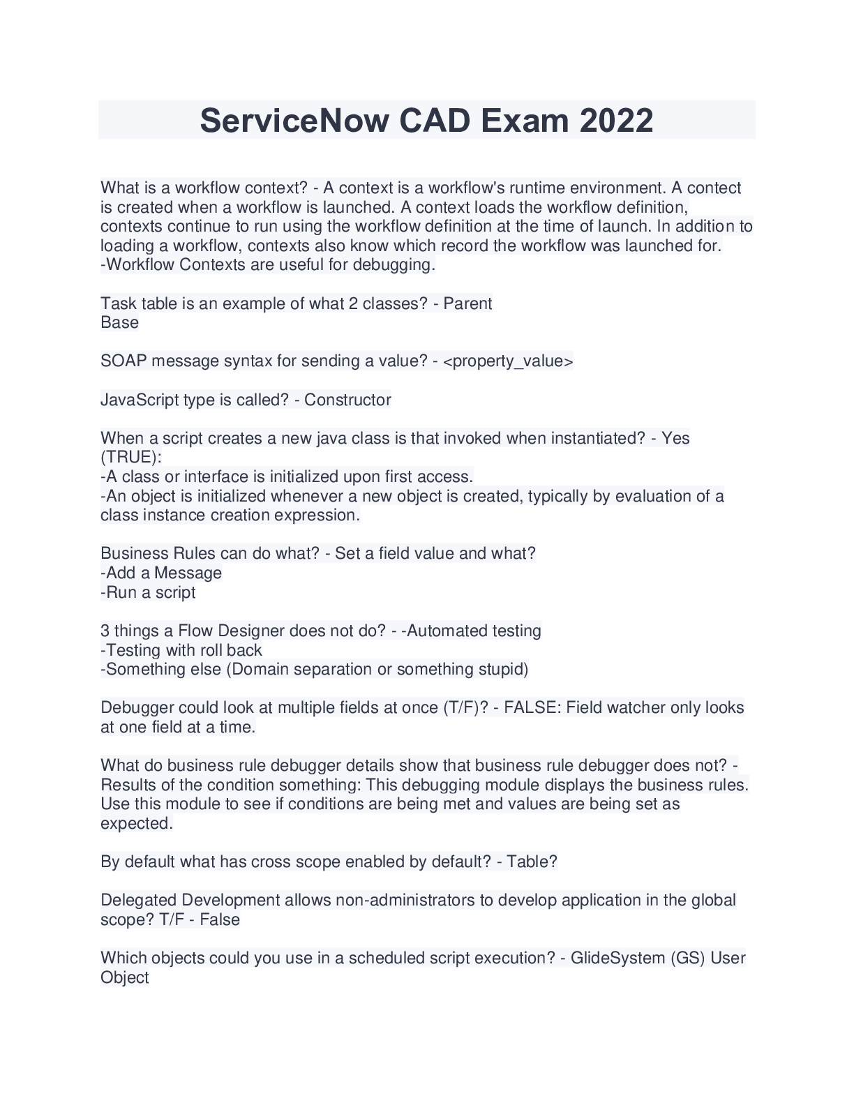 ServiceNow Certified Application Developer (CAD) Exam (2022/2023) ... [Show More]