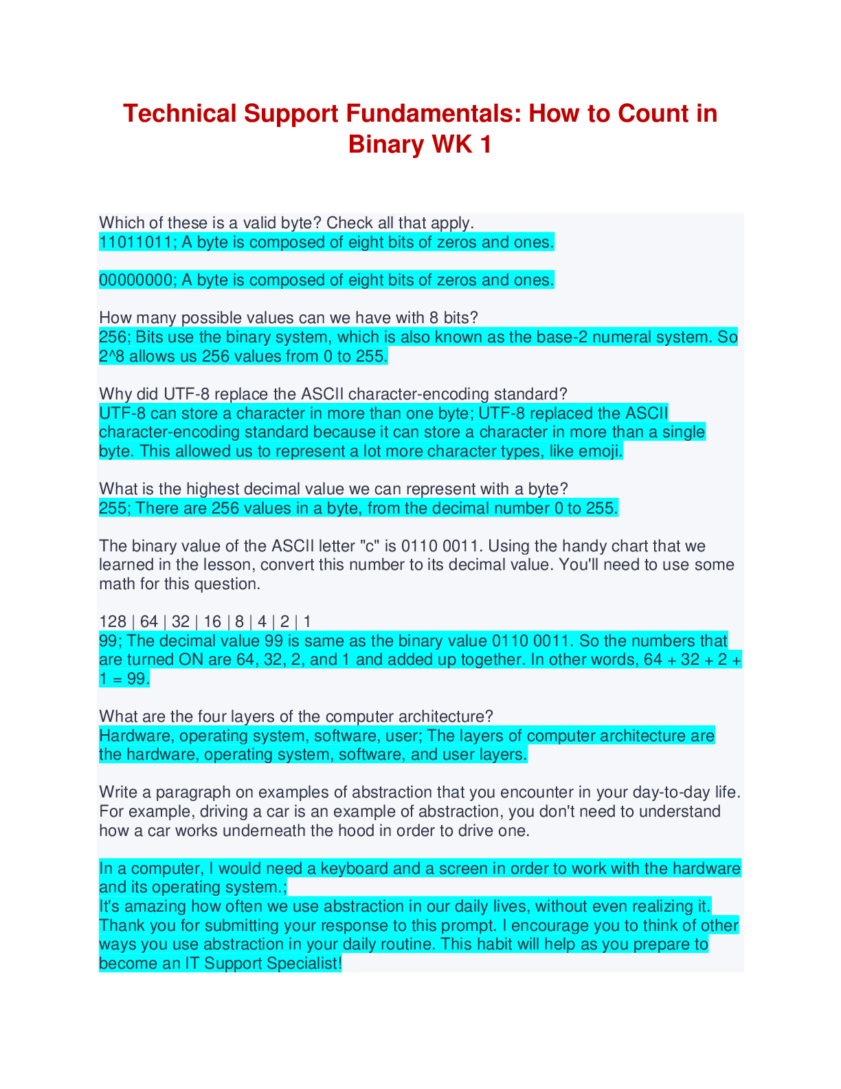 TECHNICAL SUPPORT FUNDAMENTALS: WEEK 1 - WEEK 6 EXAM BUNDLE