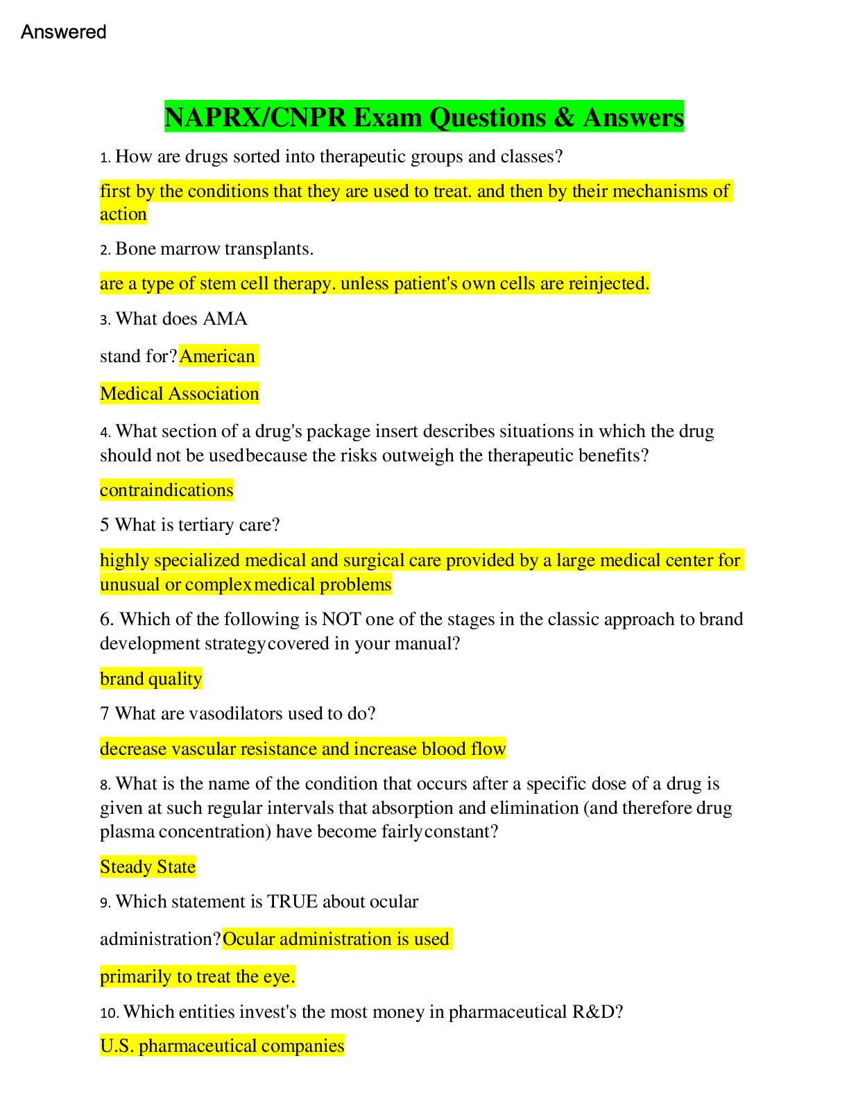 Biology > STUDY GUIDE > NAPSRx/CNPR Study Guide-Latest Update (All)