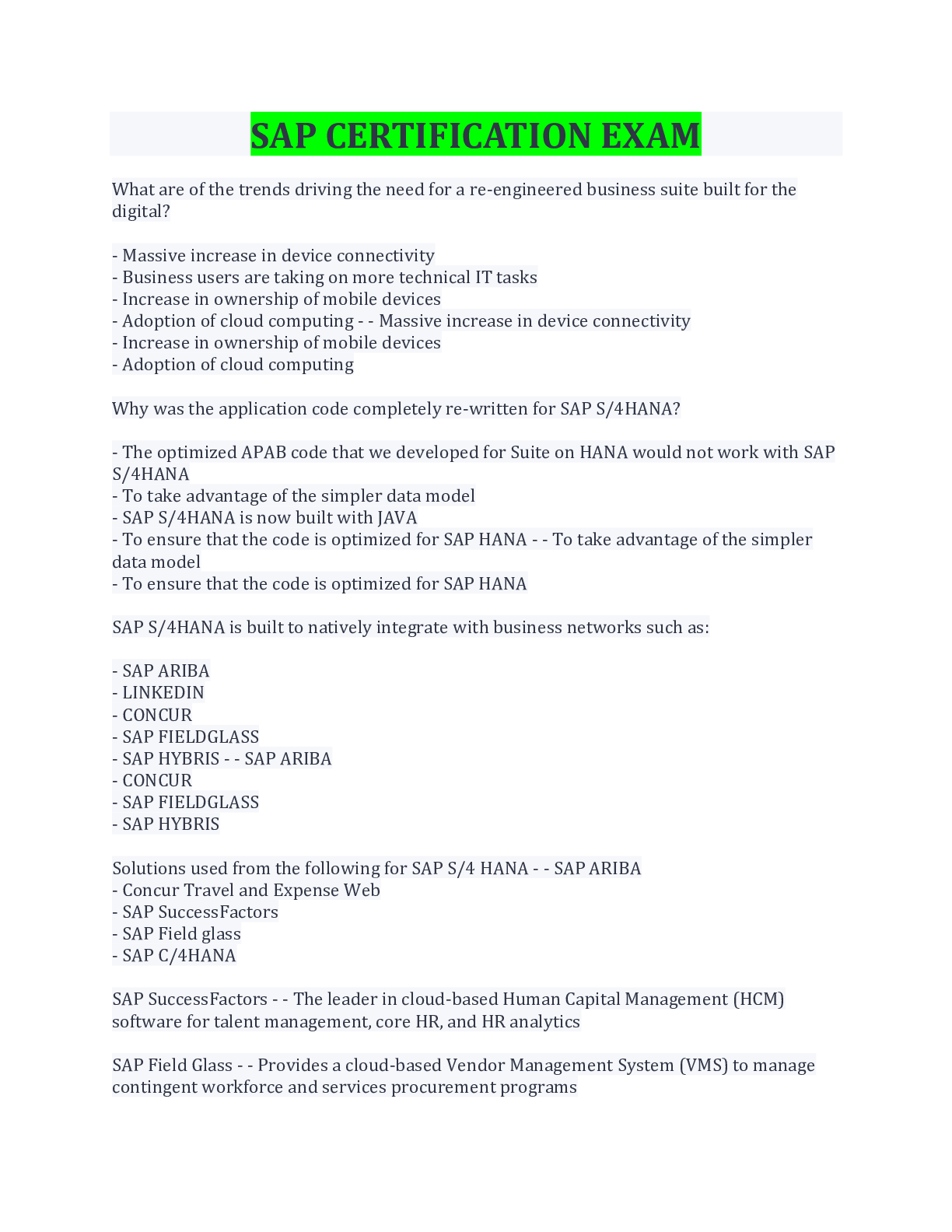 SAP SD Certification Test Questions And Answers ... [Show More]