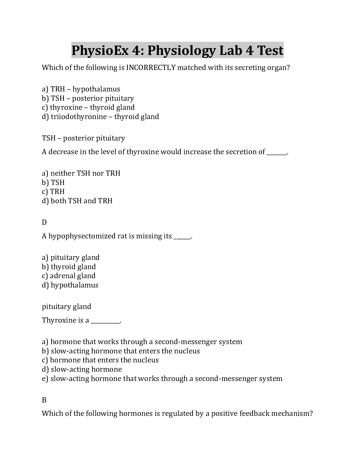 Health Care > EXAM > Physiology - Lab 4 PhysioEx 4 Quiz Review (All)