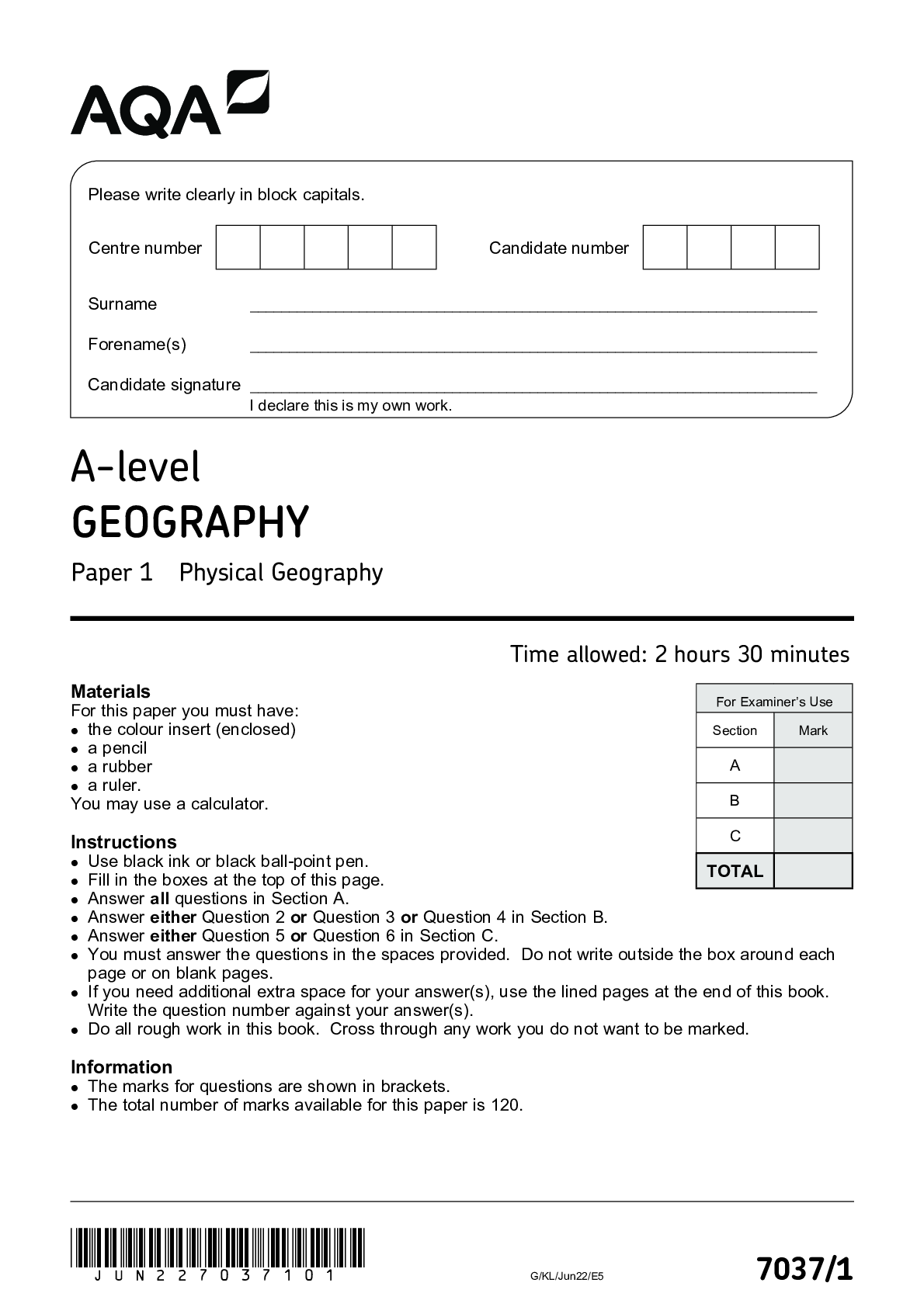 AQA A LEVEL 2022 Geography Papers and Markschemes