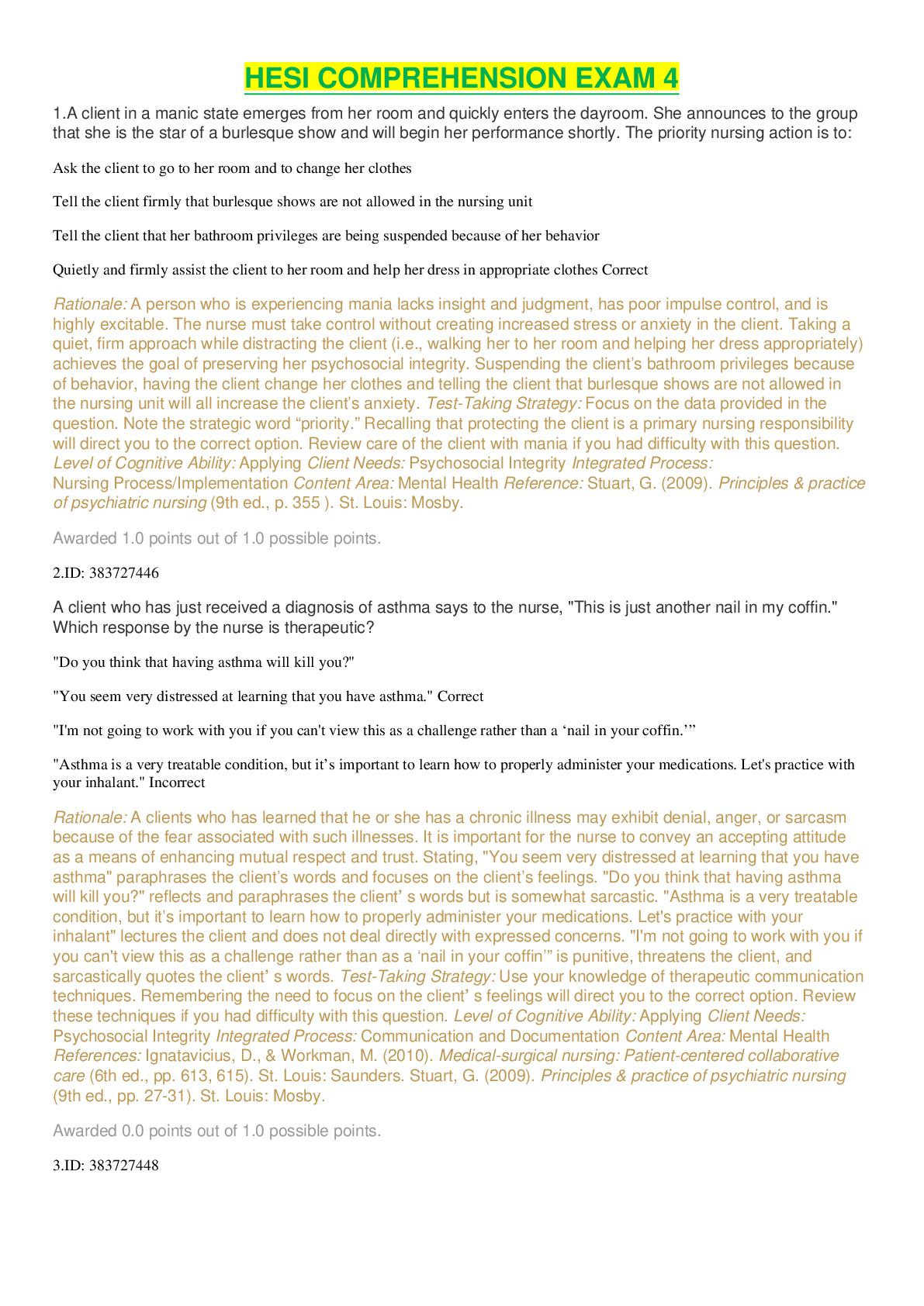 HESI EXIT EXAM MODULE 10 WITH RATIONALE. Questions