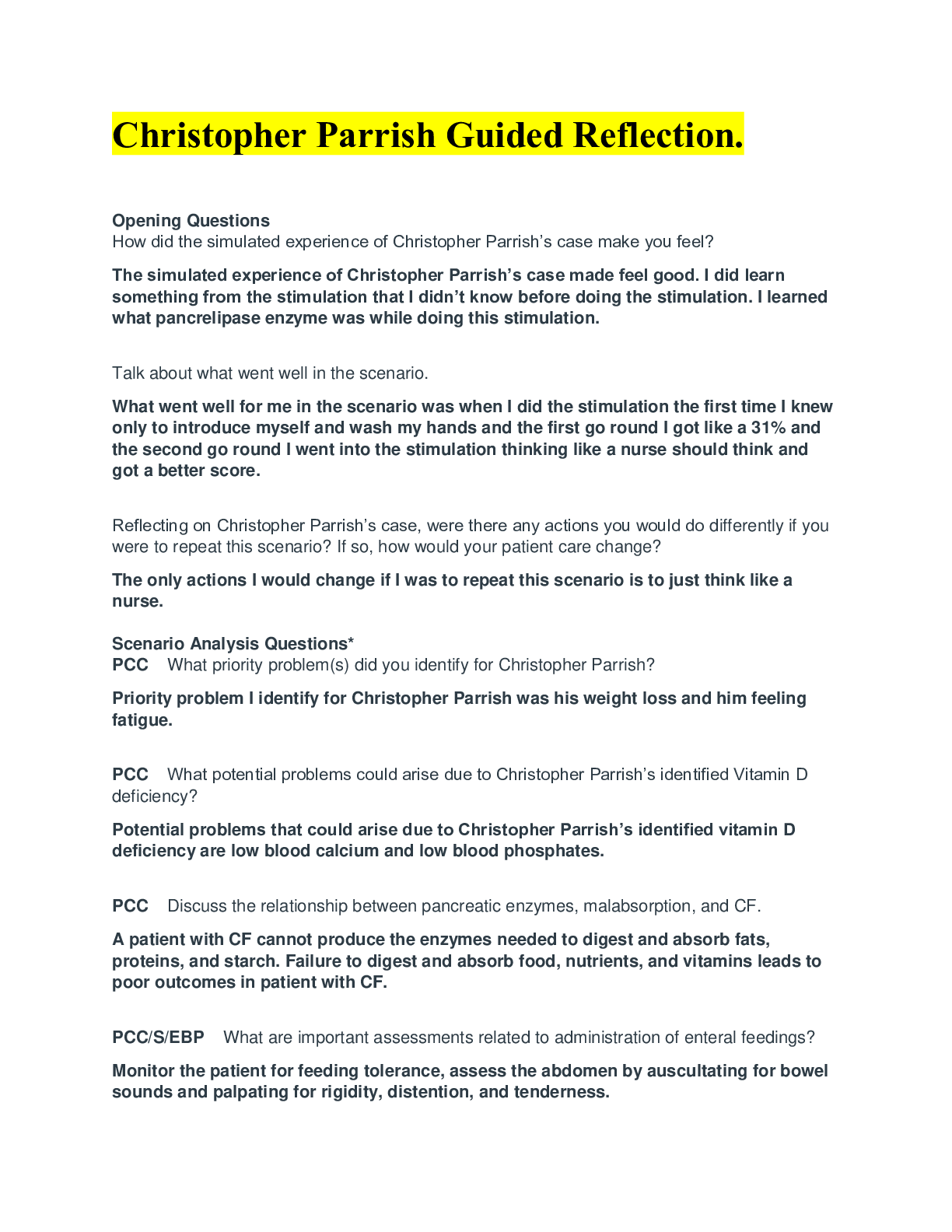 *NURSING > CASE STUDY > Christopher Parrish - Clinical Replacement Packet (All)