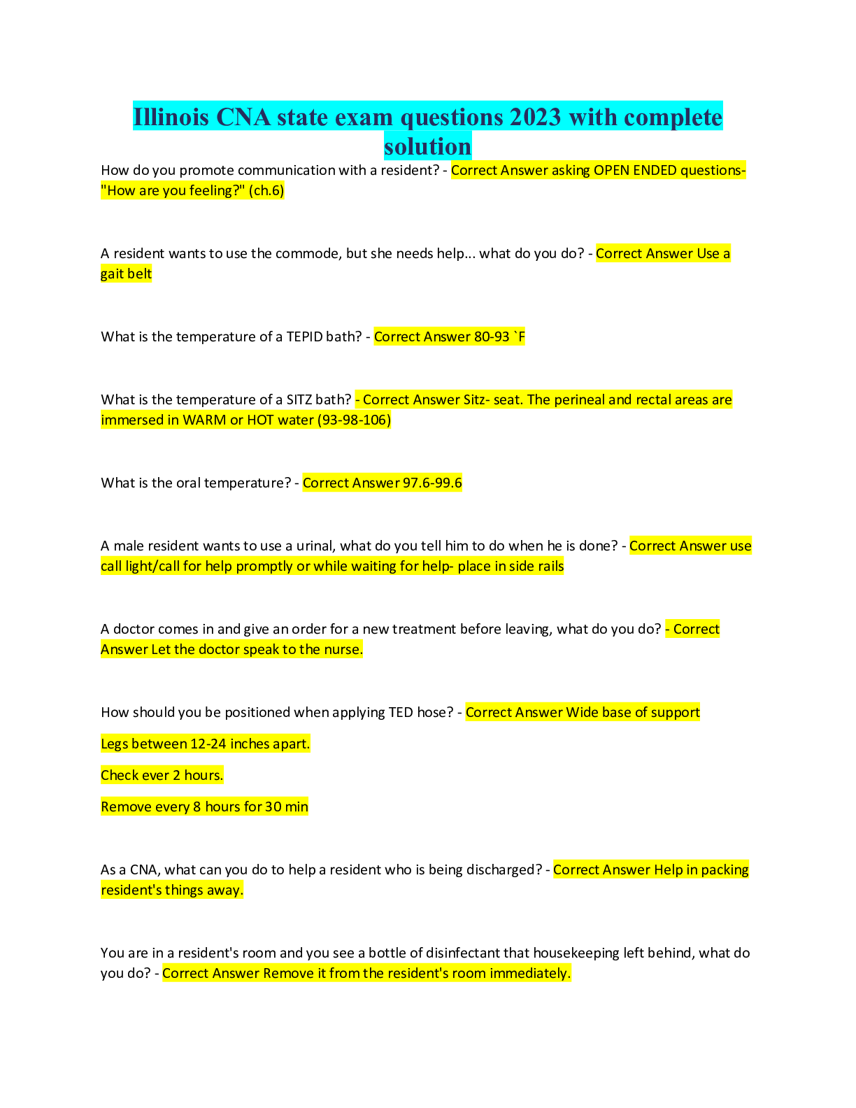 CNA Complete Bundle Latest Updated 2024/2025