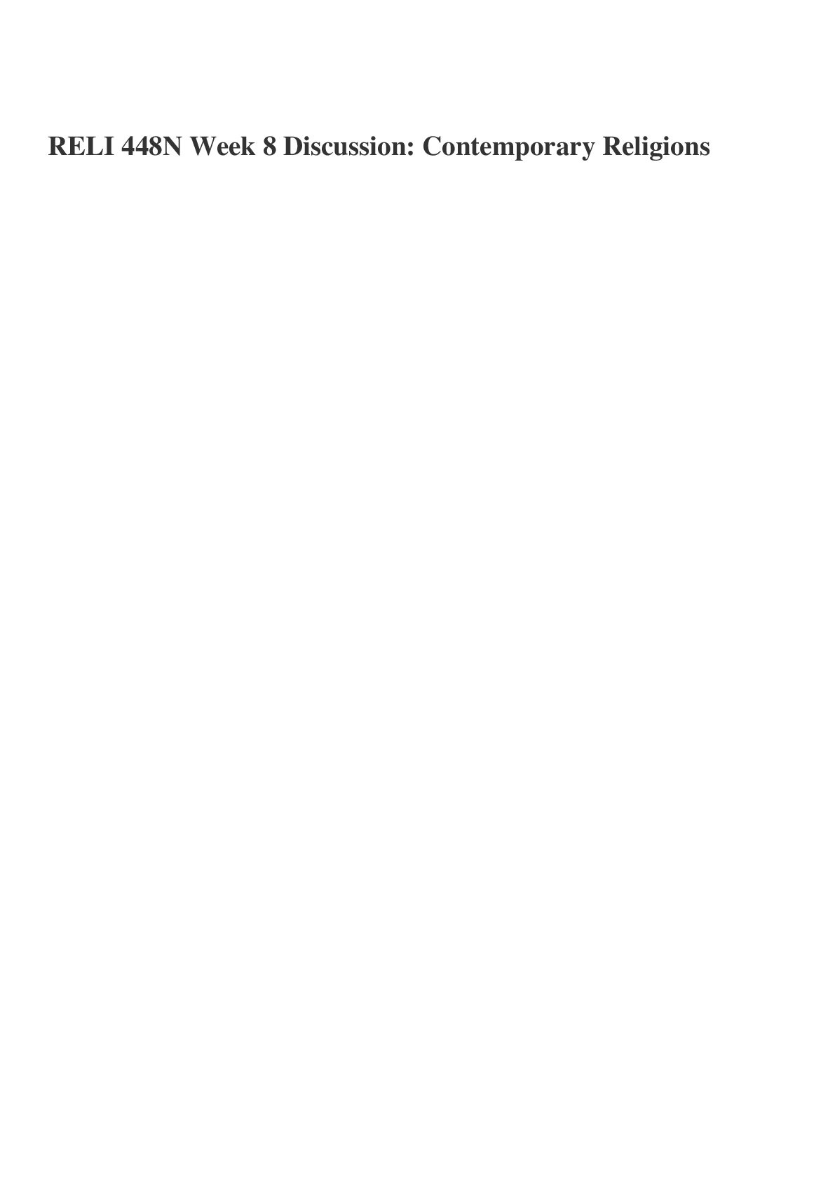 RELI 448N Week 1 - 8 Discussion Questions Course Bundle/RELI 448N Week 1 - 8 Discussion Questions Course Bundle/RELI 448N Week 1 - 8 Discussion Questions Course Bundle